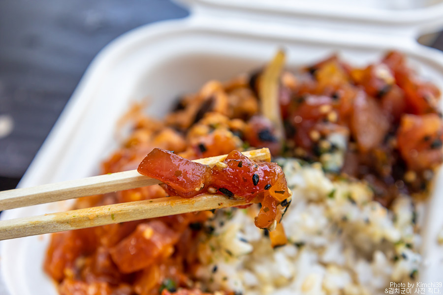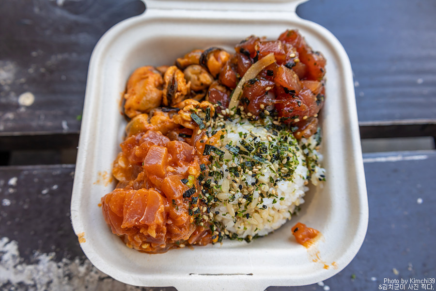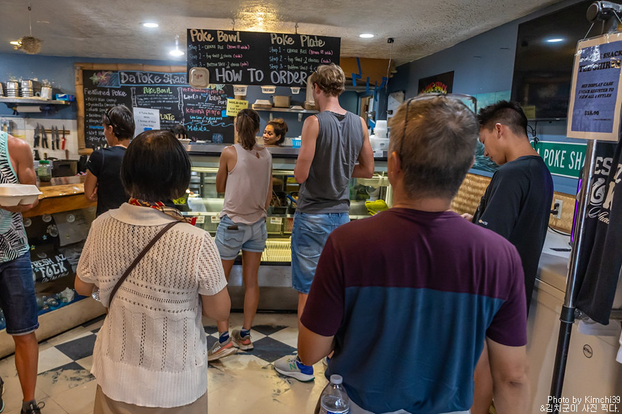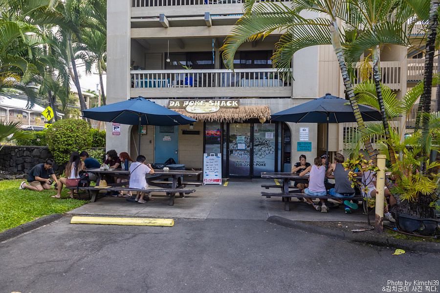 카할루우 비치파크와 매직 샌드 비치를 들린 후에, 늦은 점심을 먹기 위해서 다포케쉑(Da Poke Shack)에 들렸다. 이 주변에서 가장 유명한 포케집이면서, 신선한 포케 덕분에 항상 주차할 자리가 없을 정도로 붐비는 곳이다. 보통은 투 고(To Go - 테이크아웃)을 해서 해변에 가서 먹지만, 가게의 앞에도 커다란 2개의 테이블이 있어서 그곳에서 식사를 하기도 한다.