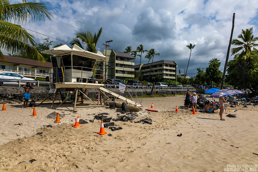 비록 하얀 모래사장은 아니지만, 오히려 굵은 모래라서 옷에 뭍은 걸 쉽게 털어낼 수 있어서 좋다. 해수욕보다는 물놀이에 더 적합한 해변이다. 마음같아서는 바로 스노클링 장비를 사가지고 와서 물 속으로 뛰어들고 싶었지만, 이미 몇 번 스노클링을 해 본 곳이기도 해서 다음을 기약하기로 했다. 결국 빅아일랜드에서는 스노클링 장비는 샀지만 이번 출장때는 스노클링을 하지 못했다.