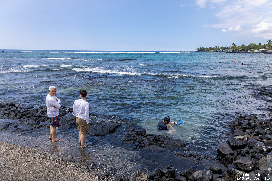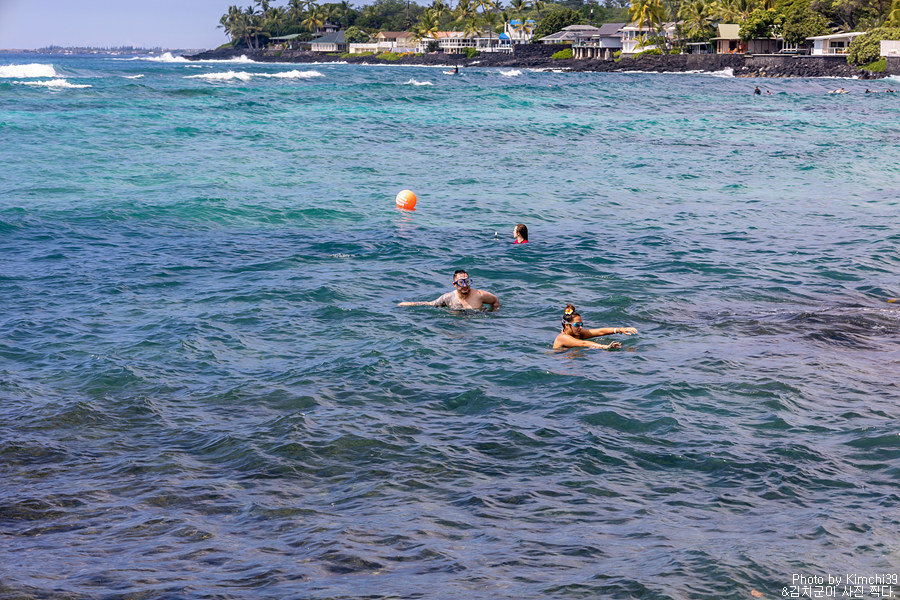 렌터카를 인수해서 가장 먼저 이동한 곳은 카할루우 비치 파크였다. 빅아일랜드의 가장 대표적인 스노클링 스팟으로, 가족들도 손쉽게 스노클링을 할 수 있으면서 여러 시설도 잘 갖춰진 공원이다. 화장실과 피크닉 에어리어, 샤워시설과 라이프가드까지 있기 때문에 안심하고 물놀이를 즐길 수 있다. 또한, 파도도 다른 해변들에 비해서 상대적으로 약한 편이라서, 스노클링을 즐기기에 나쁘지 않다. 물론, 바람이 너무 강한날에는 여기서도 스노클링을 즐길 수 없는 건 마찬가지니까.