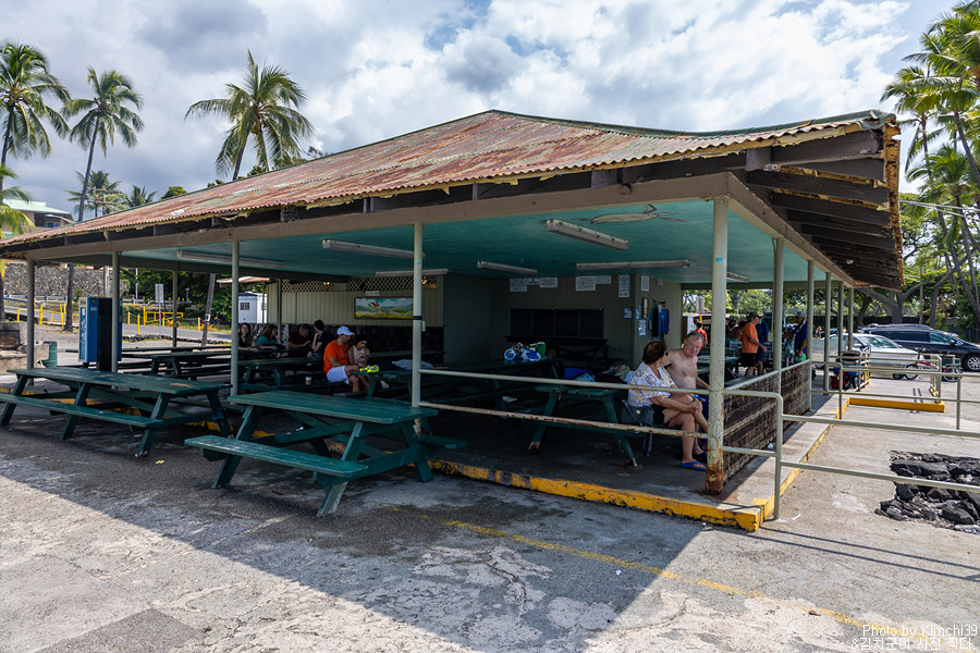 카할루우 비치에는 이렇게 지붕이 있는 피크닉 에어리어가 있어서, 스노클링을 하고 쉬거나 간단하게 점심을 먹거나 할 수 있어서 좋다. 물론 사람들이 몰리는 시간대에는 자리를 잡기 어려울 때도 있지만, 카할루우 비치파크를 찾는 많은 사람들이 대부분 해변이나 나무 아래에 자리잡는 걸 선호하기 때문에 이쪽은 자리가 비어있는 경우가 많다. 물론, 관광객들보다 현지인들이 더 많은 주말은 예외일 수 있다.