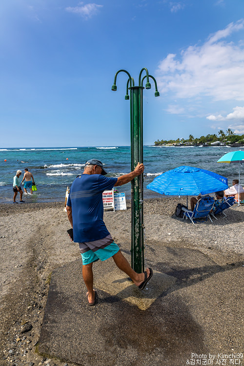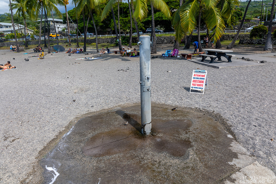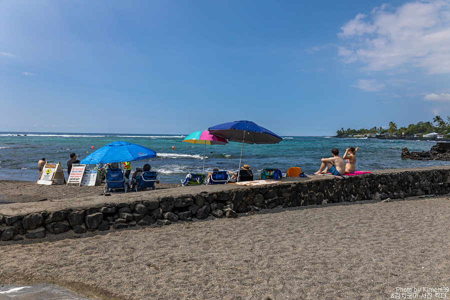 비록 하얀 모래사장은 아니지만, 오히려 굵은 모래라서 옷에 뭍은 걸 쉽게 털어낼 수 있어서 좋다. 해수욕보다는 물놀이에 더 적합한 해변이다. 마음같아서는 바로 스노클링 장비를 사가지고 와서 물 속으로 뛰어들고 싶었지만, 이미 몇 번 스노클링을 해 본 곳이기도 해서 다음을 기약하기로 했다. 결국 빅아일랜드에서는 스노클링 장비는 샀지만 이번 출장때는 스노클링을 하지 못했다.