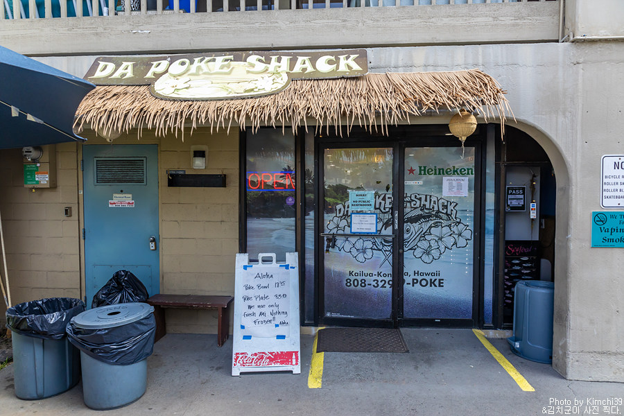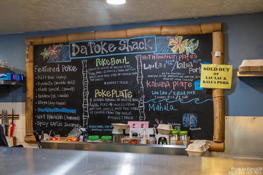 카할루우 비치파크와 매직 샌드 비치를 들린 후에, 늦은 점심을 먹기 위해서 다포케쉑(Da Poke Shack)에 들렸다. 이 주변에서 가장 유명한 포케집이면서, 신선한 포케 덕분에 항상 주차할 자리가 없을 정도로 붐비는 곳이다. 보통은 투 고(To Go - 테이크아웃)을 해서 해변에 가서 먹지만, 가게의 앞에도 커다란 2개의 테이블이 있어서 그곳에서 식사를 하기도 한다.