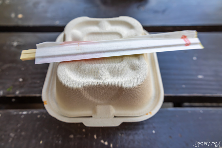 그렇게 주문한 포케볼을 들고 밖으로 나와서 먹을 준비를 했다. 포크와 젓가락 중 무엇을 고를거냐고 묻는데, 당연히 젓가락이 더 편하므로 젓가락.