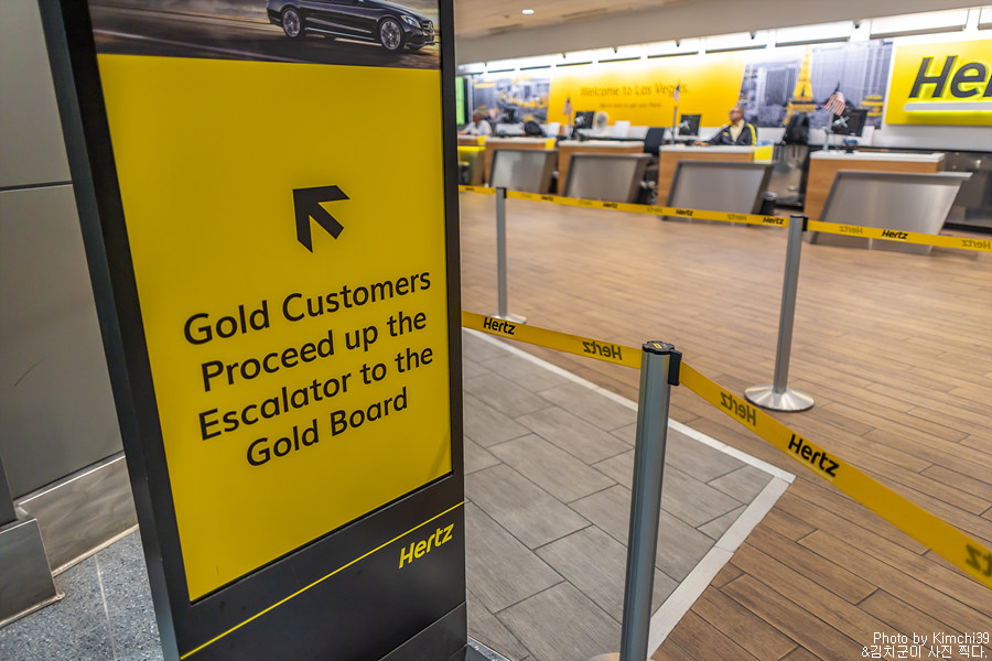 라스베가스 허츠 렌터카는 들어가서 가장 오른쪽에 위치하고 있는데, 이곳은 일반 예약을 했을 때 방문하는 카운터다. 골드 회원의 경우에는 바로 주차장에 위치한 골드회원 카운터로 가면 된다.
