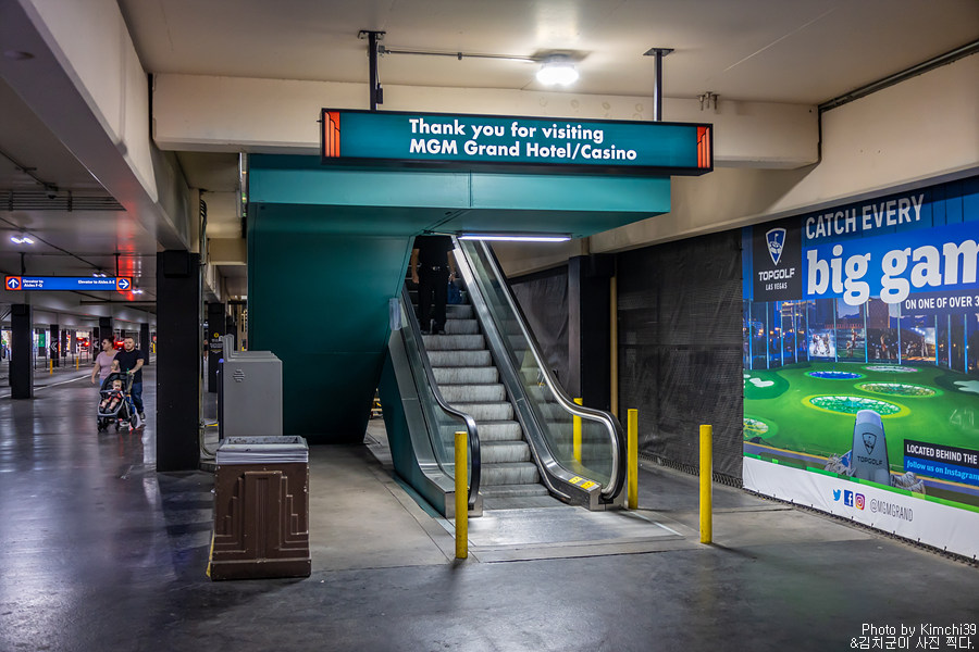 저녁에 도착한 MGM 그랜드 호텔의 주차장. 주차장에서 체크인을 하는 곳까지도 꽤 걸어야 한다. 2023년 10월 기준, MGM 그랜드호텔의 셀프 주차비는 24시간에 $18 (주말은 $23) 이다. 차를 주차장에 주차하고, 바로 짐을 가지고 이동했다. 이 때 숙박비가 좀 비쌌었는데, 마침 프라이스라인 익딜에서 호텔이 굉장히 저렴하게 나와서 숙박비를 많이 아낄 수 있었다.