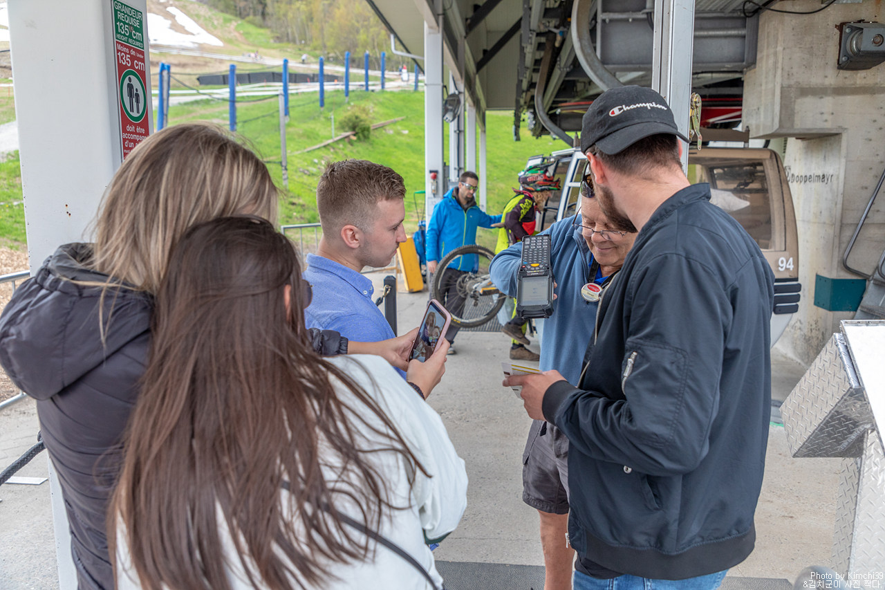 곤돌라에는 바코드가 있기 때문에 직원이 바코드를 찍어보고 사람들을 입장시킨다. 이날은 바이크 행사 때문에 자전거 한번, 사람 한번 타는 형태로 운영되었다. 왜냐면, 바이크에 뭍은 진흙때문에 일반인은 그 곤돌라를 타고싶지 않아했기 때문.