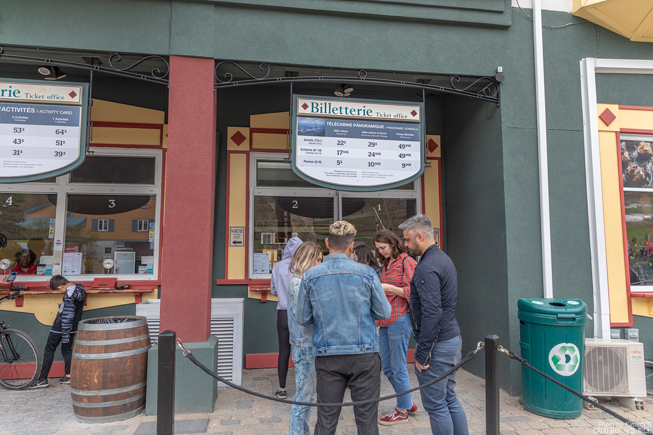 몽트랑블랑의 곤돌라는 티켓 데스크에서 직접 구입이 가능하다. 성인은 $22, 아동은 $17.50, 유아는 $5이며, 세금은 별도. 근데, 점심을 포함할 경우 $7+tax만 더 내면 되기 때문에, 런치포함으로 구입하는 것이 이득이다. 뭐, 위에서 먹는 런치가 샌드위치+샐러드+음료의 간단한 조합이라고는 하지만, $10 이상의 가치가 있기 때문이다. 물론, 식사를 했거나 시간대가 아니라면 단순 왕복이 낫겠지만. 그리고 성인 2 + 아동 1 이상의 조합이라면 가족패스가 더 저렴하다. 가족패스는 성인2+아동 2 기준.