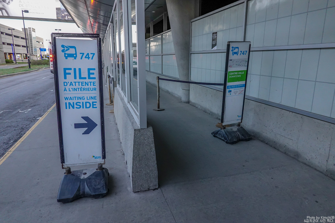 몬트리올 국제공항에서 시내로 가고자 할 경우, 이곳에 줄을 서서 버스에 탑승하면 된다. 물론, 사전에 티켓을 머신에서 구입해야 하는 것은 필수.