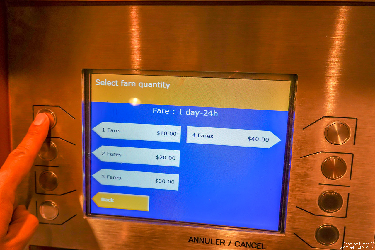 티켓 판매 기계에서 먼저 왼쪽 아래의 영어(English)를 누르고, 오른쪽의 티켓 없음을 눌르면 구매 화면으로 넘어간다. 그리고 원하는 패스를 선택하면 된다. 1일권 $10, 주말권(금 오후4시~월 새벽5시) $13.75, 3일권 $19. 대중교통을 몇번만 이용해도 절약되는 금액이 많다.