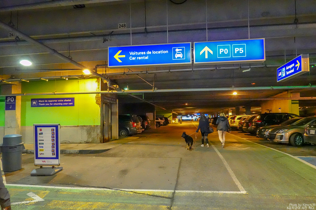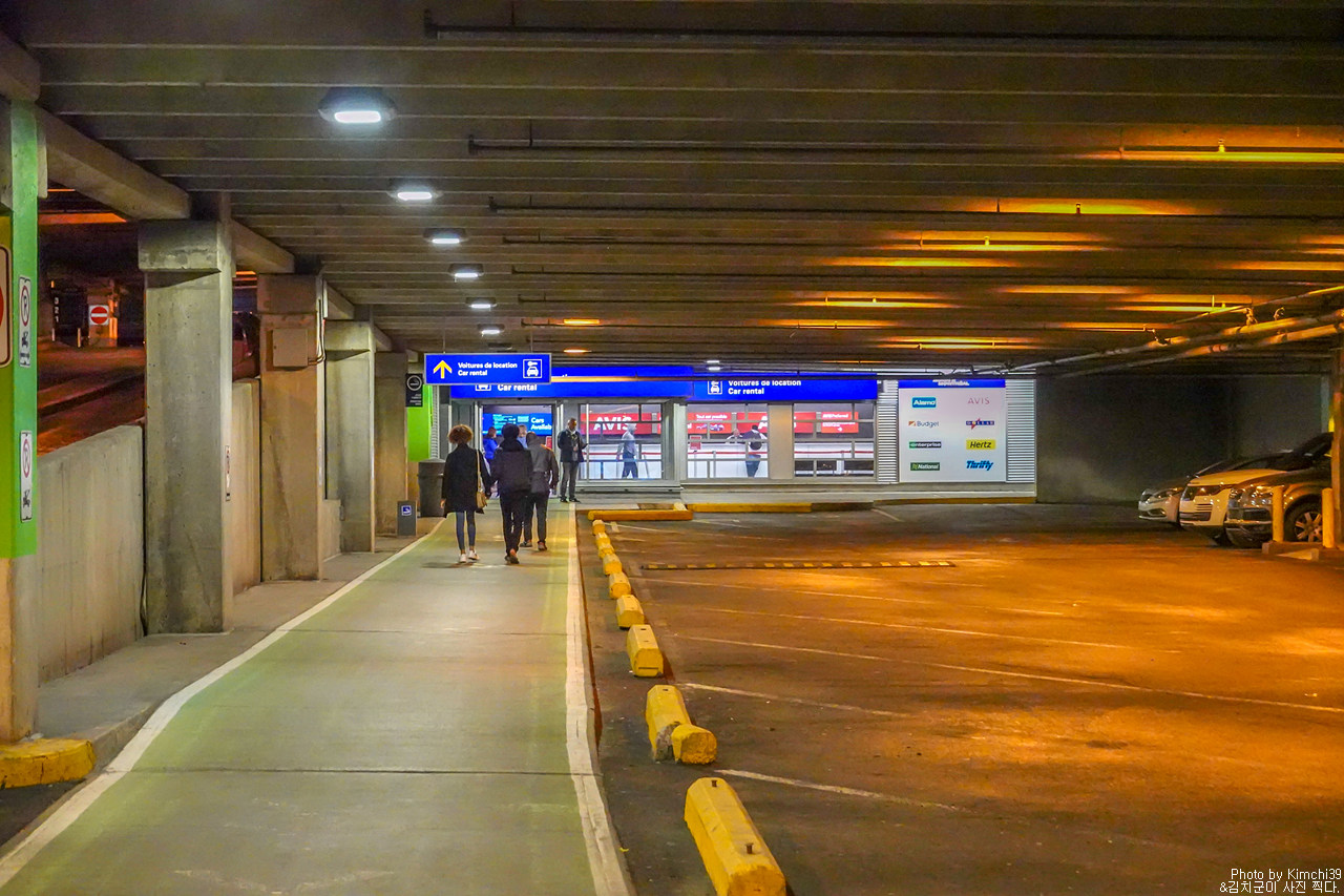 몬트리올 국제공항의 렌터카 센터 주차장 한 컷.