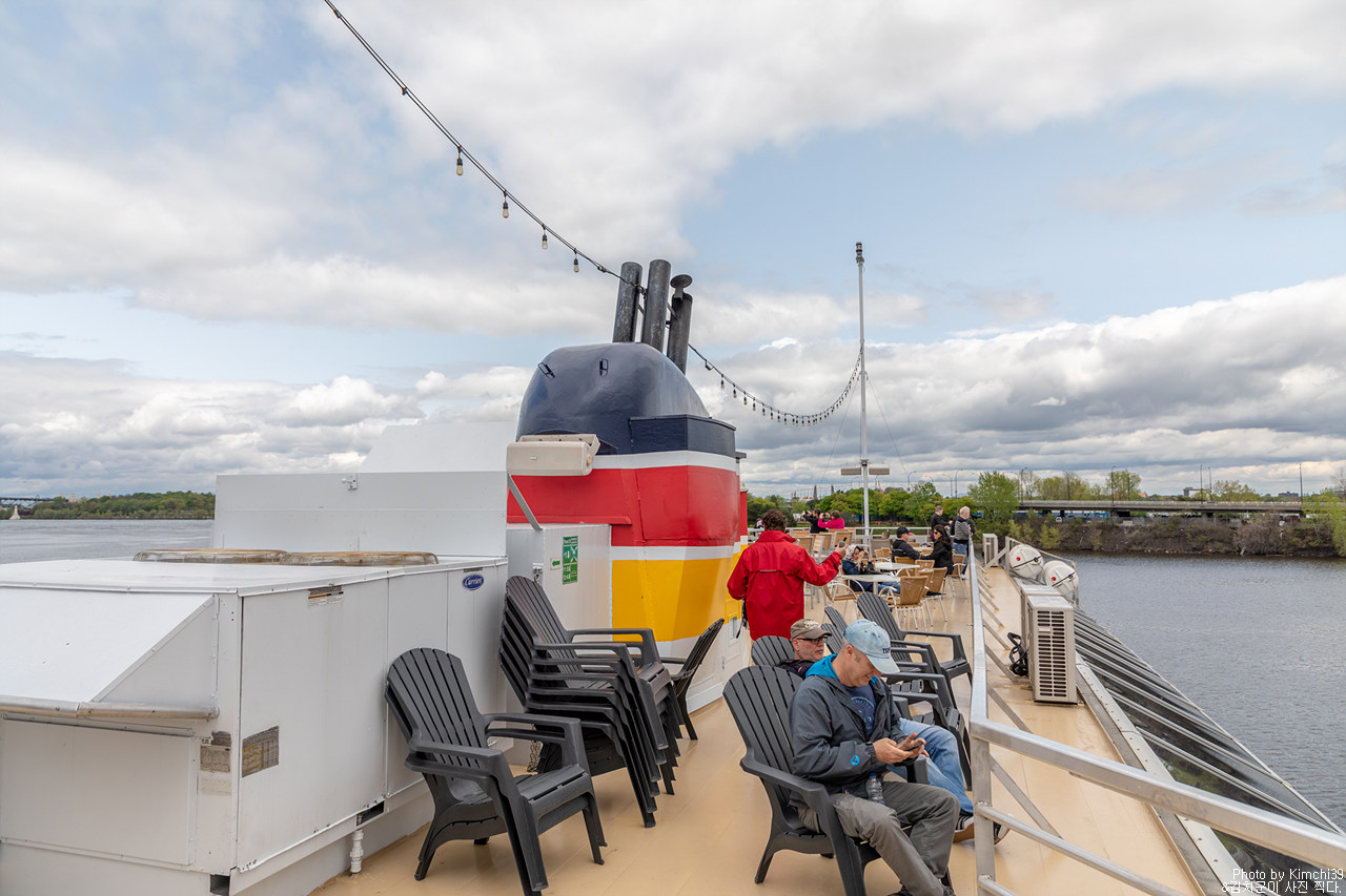 날씨가 그렇게 좋은 날은 아니었는데, 그래도 사람들이 꽤 있었다. 사실 크루즈의 규모에 비하면 전체적으로 이날은 평일이기도 해서 많지는 않았지만. 어쨌든 그렇다고 아예 없지는 않았다. 일단, 크루즈의 후기부터 말하자면 초반에 자끄 까흐띠에 다리를 지나서 몬트리올 시내가 멀리 보일때까지는 괜찮았는데, 그 뒤로는 그냥 크루즈만 하는 일정이라서 조금 지루했다.