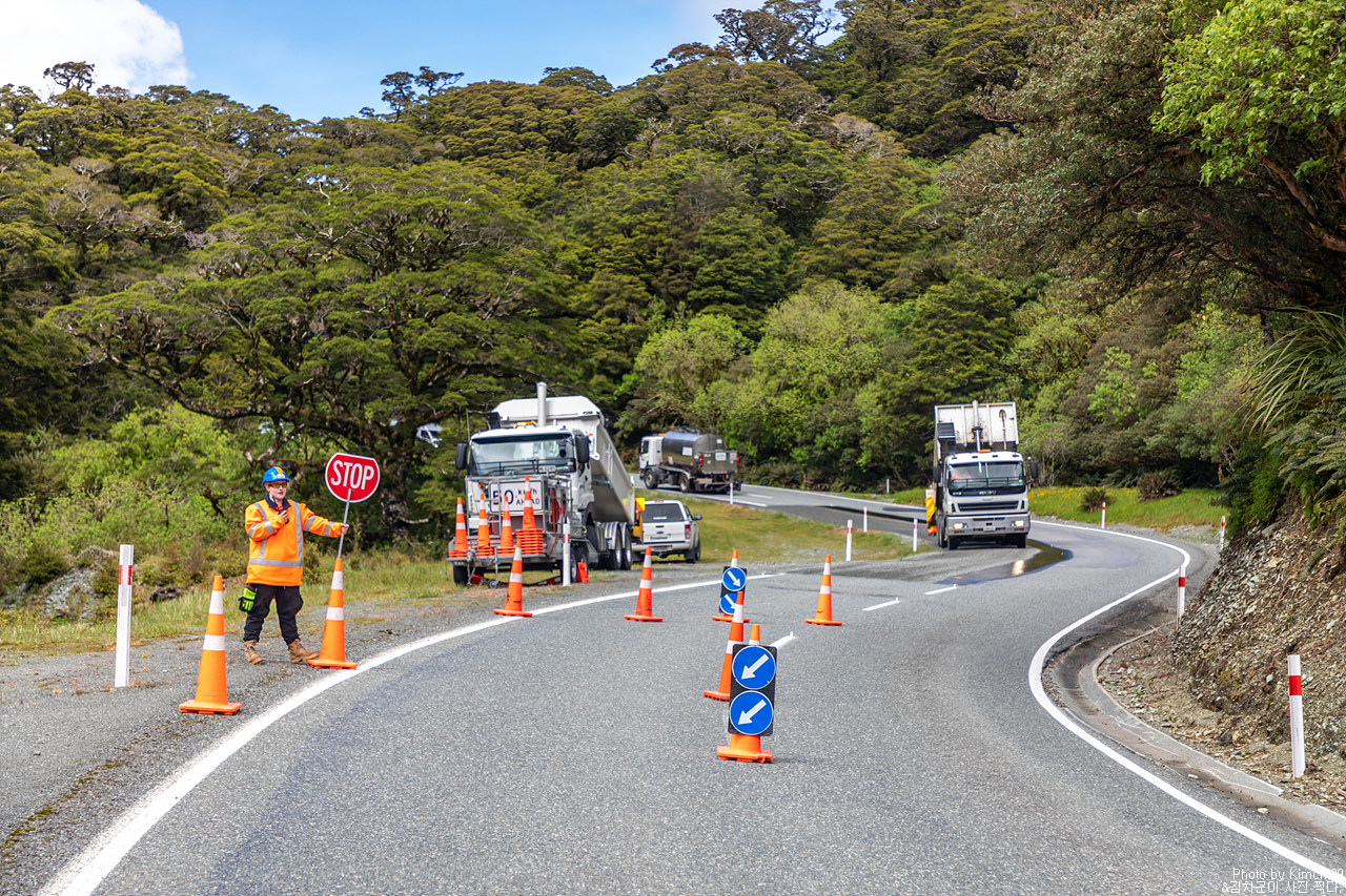 뉴질랜드에서는 이렇게 공사중인 구간을 참 많이 만날 수 있었다. 특히 남섬의 경우에는 겨울이 지난 후에 공사를 시작하기 때문에, 여름에 곳곳에서 공사가 진행중이라고 했다. 겨울에 공사를 하면 더 쉽게 망가지기 때문이라나? 어쨌든 이 공사구간을 지나 키 서밋에 도착했다.