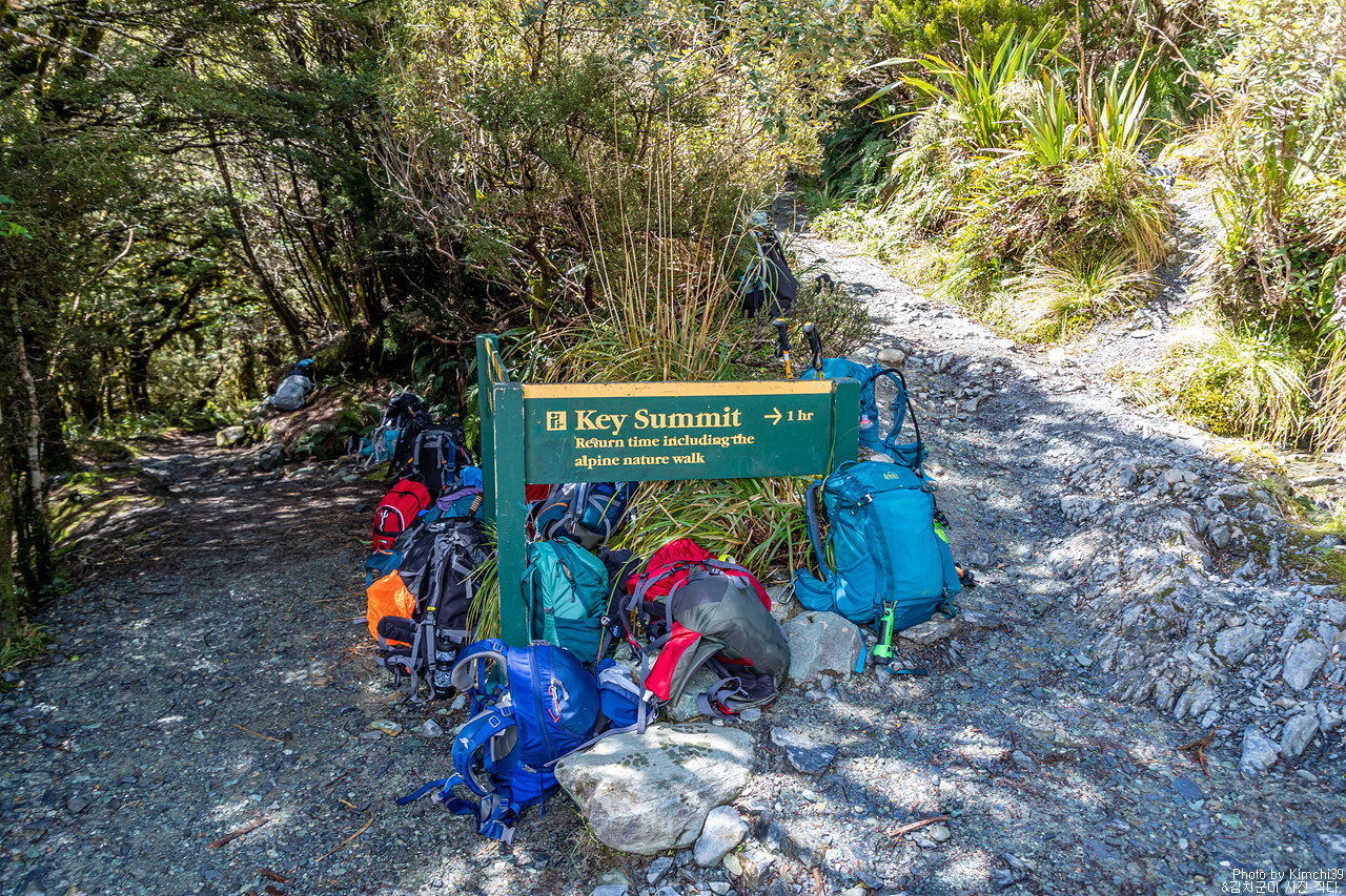 밀포드사운드에는 전체 구간을 걷지 못하더라도, 충분히 몇시간 정도를 내서 걸어볼만한 트레일들이 많다. 특히 그 중에서도 많은 사람들이 꼭 걸어보라는 하이킹 코스가 있었으니, 바로 키서밋(Key Summit)이다. 더 디바이드(The Divide)의 주차장에서 트레일이 시작되며, 3시간이라고 표기되어 있지만 실제로는 2시간~2시간 반이면 충분히 왕복할 수 있다. 뭐, 사진 찍으면서 느긋하게 가도 3시간이 채 안 걸렸으니까 말이다.
