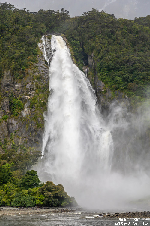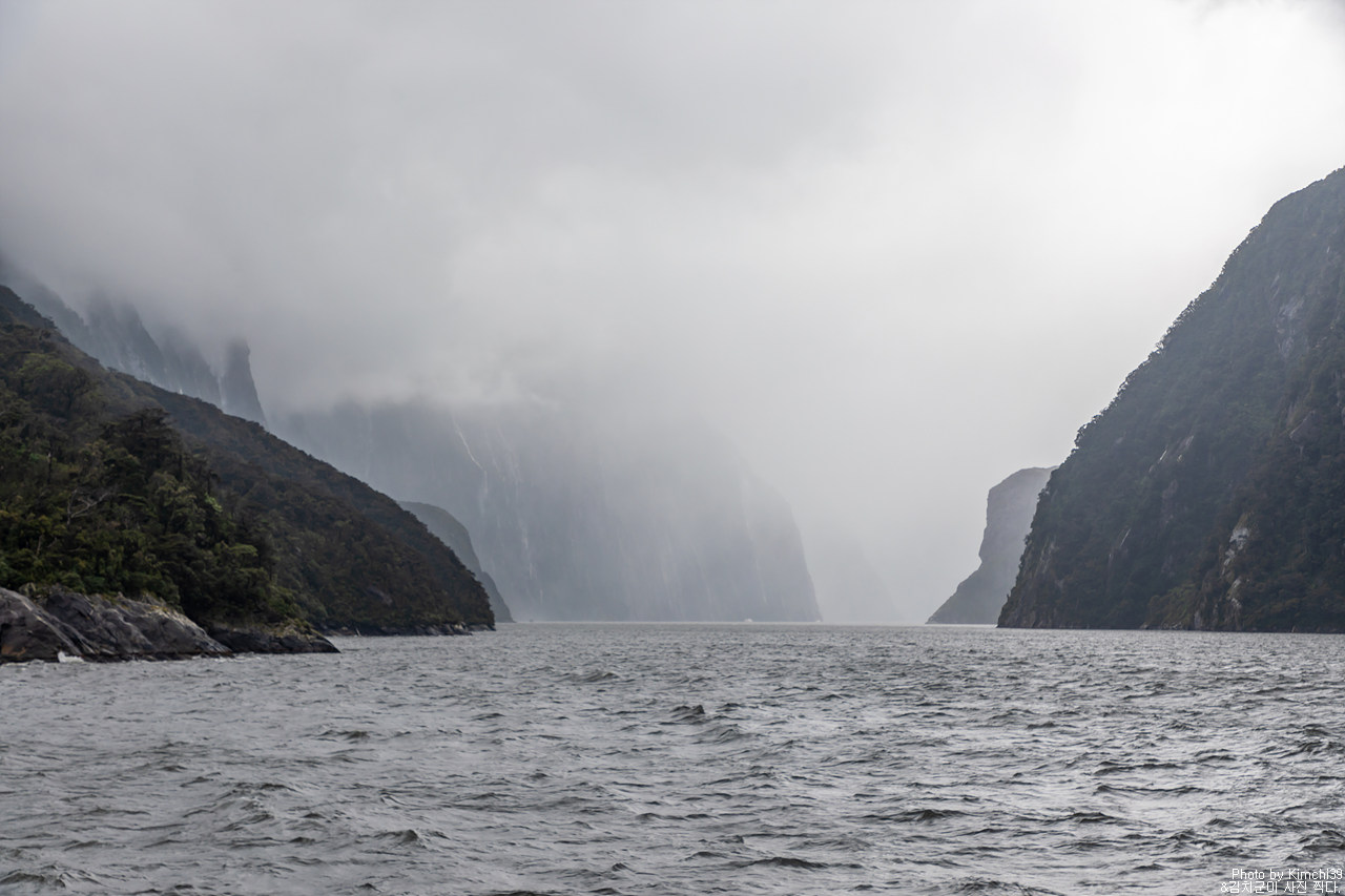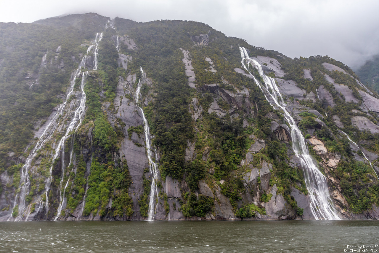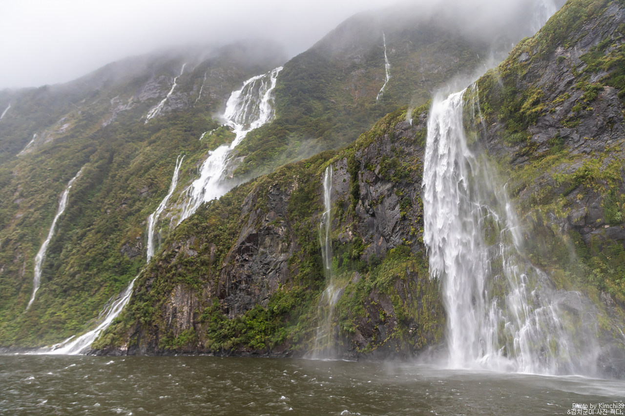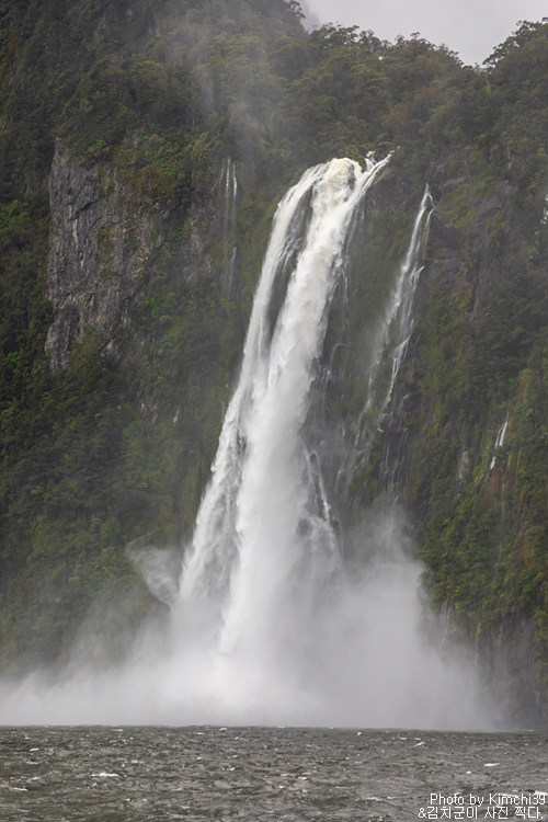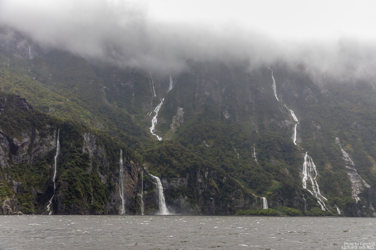 그렇게 밀포드사운드 쥬시 크루즈는 출발했고, 곧바로 비가 엄청나게 쏟아지기 시작했다. 아. 역시 비가 온다고는 했지만, 이렇게까지 많이 올 줄이야. 덕분에 모든 사람들이 배 안에서 머물렀지만, 역시 밖에서 비를 맞으며 감상하는 용자도 있었다.