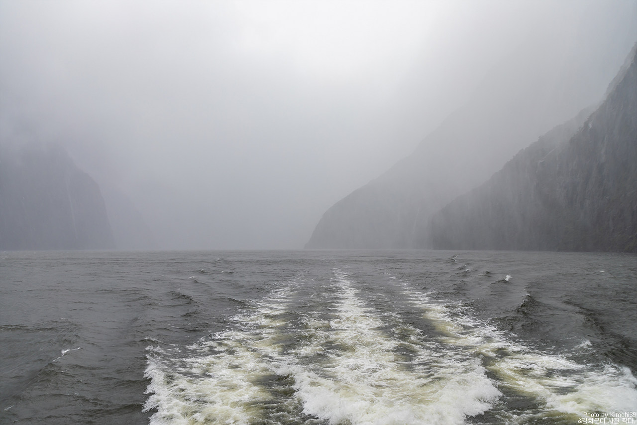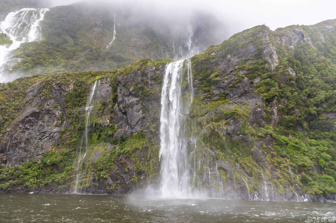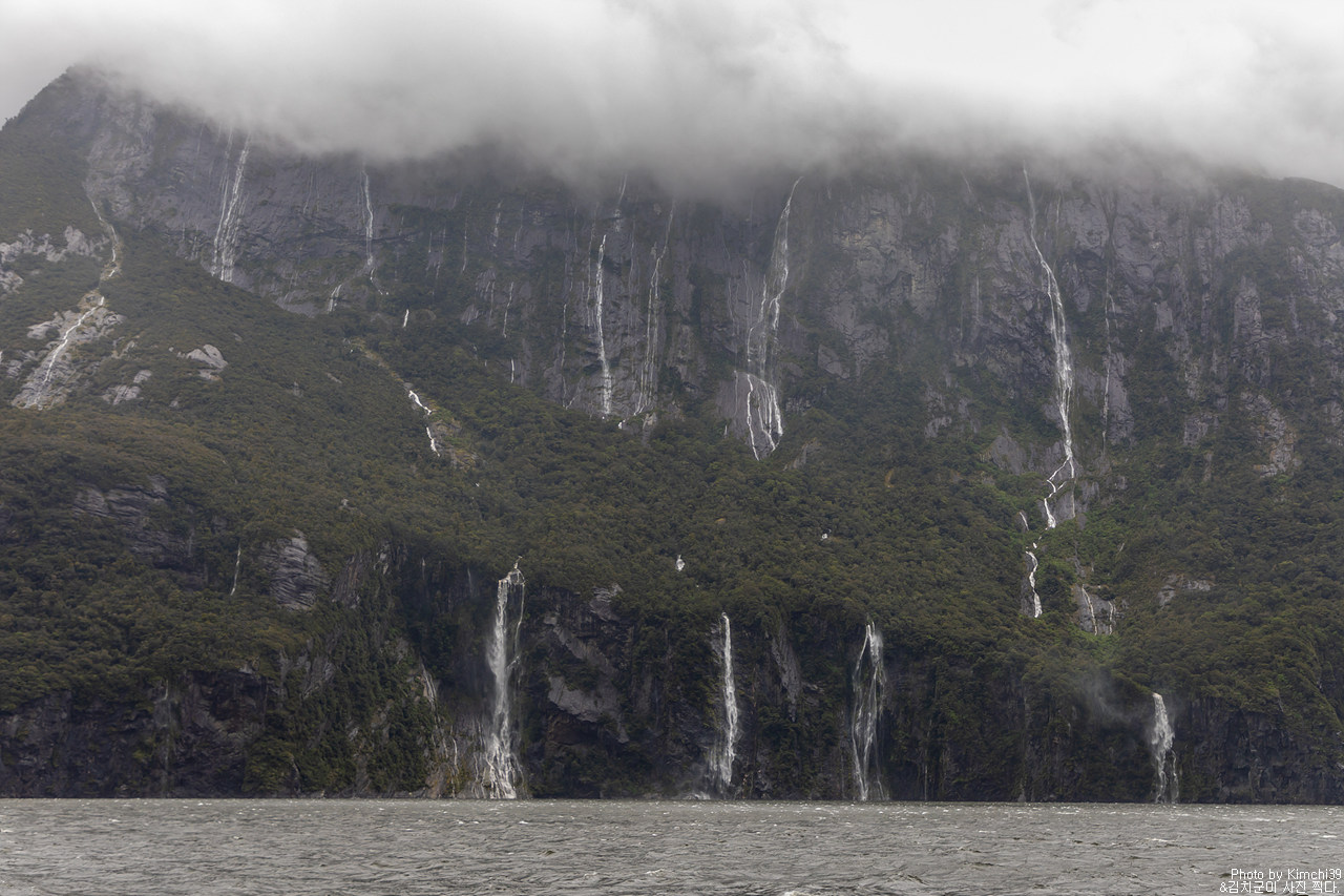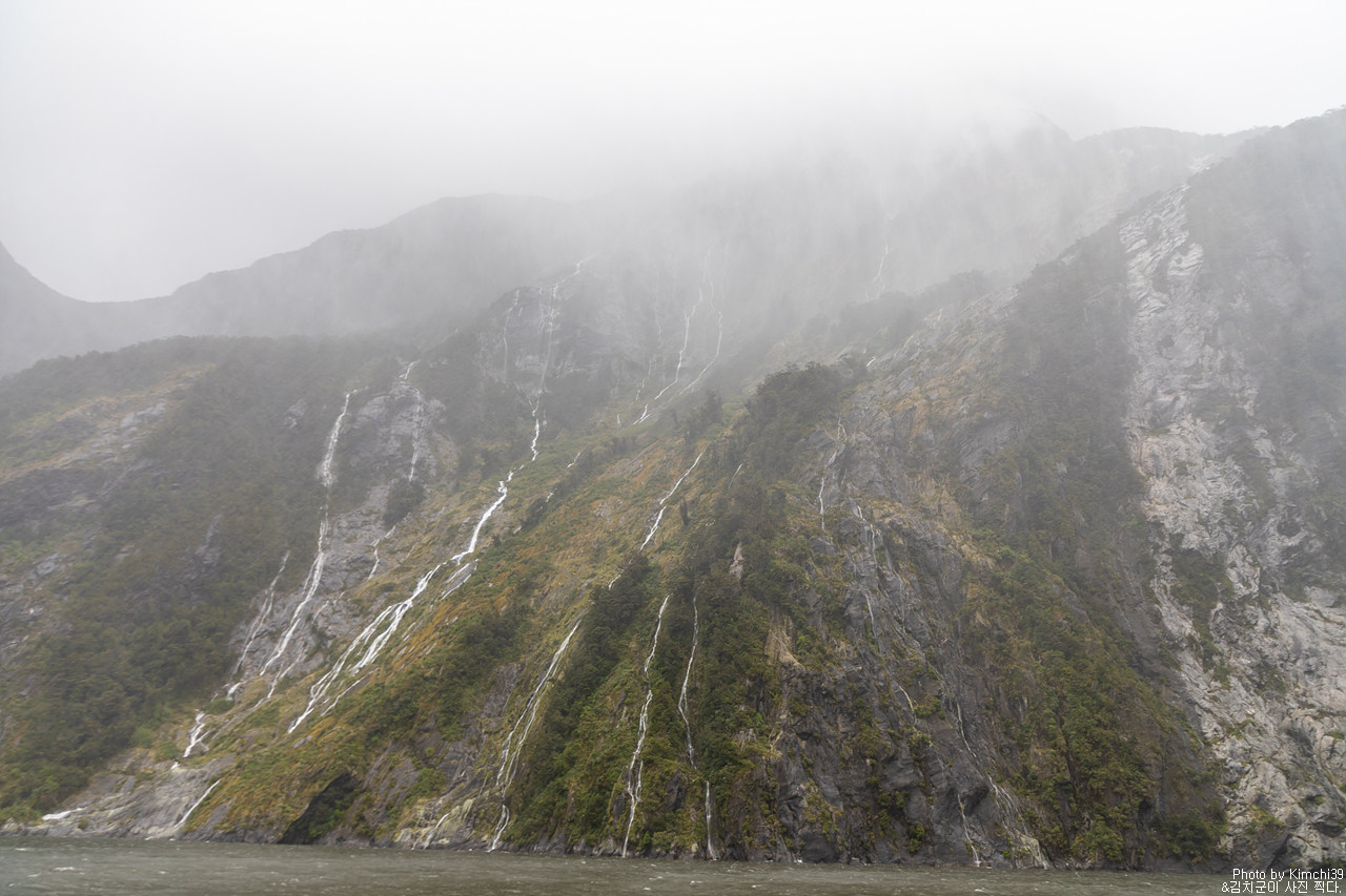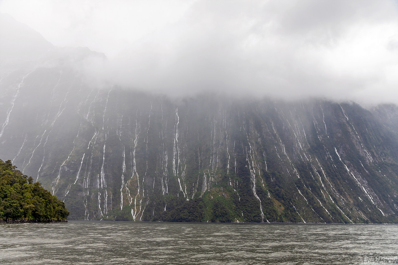 그렇게 밀포드사운드 쥬시 크루즈는 출발했고, 곧바로 비가 엄청나게 쏟아지기 시작했다. 아. 역시 비가 온다고는 했지만, 이렇게까지 많이 올 줄이야. 덕분에 모든 사람들이 배 안에서 머물렀지만, 역시 밖에서 비를 맞으며 감상하는 용자도 있었다.