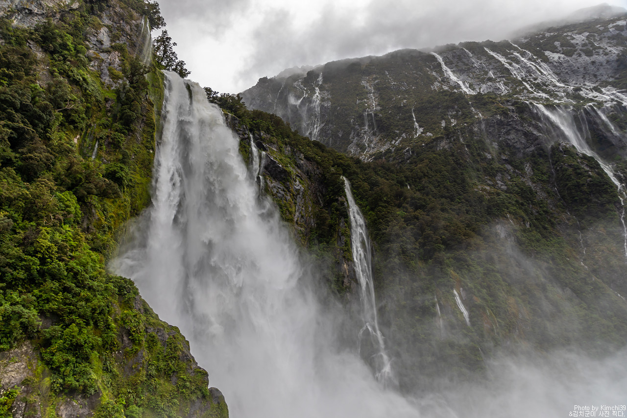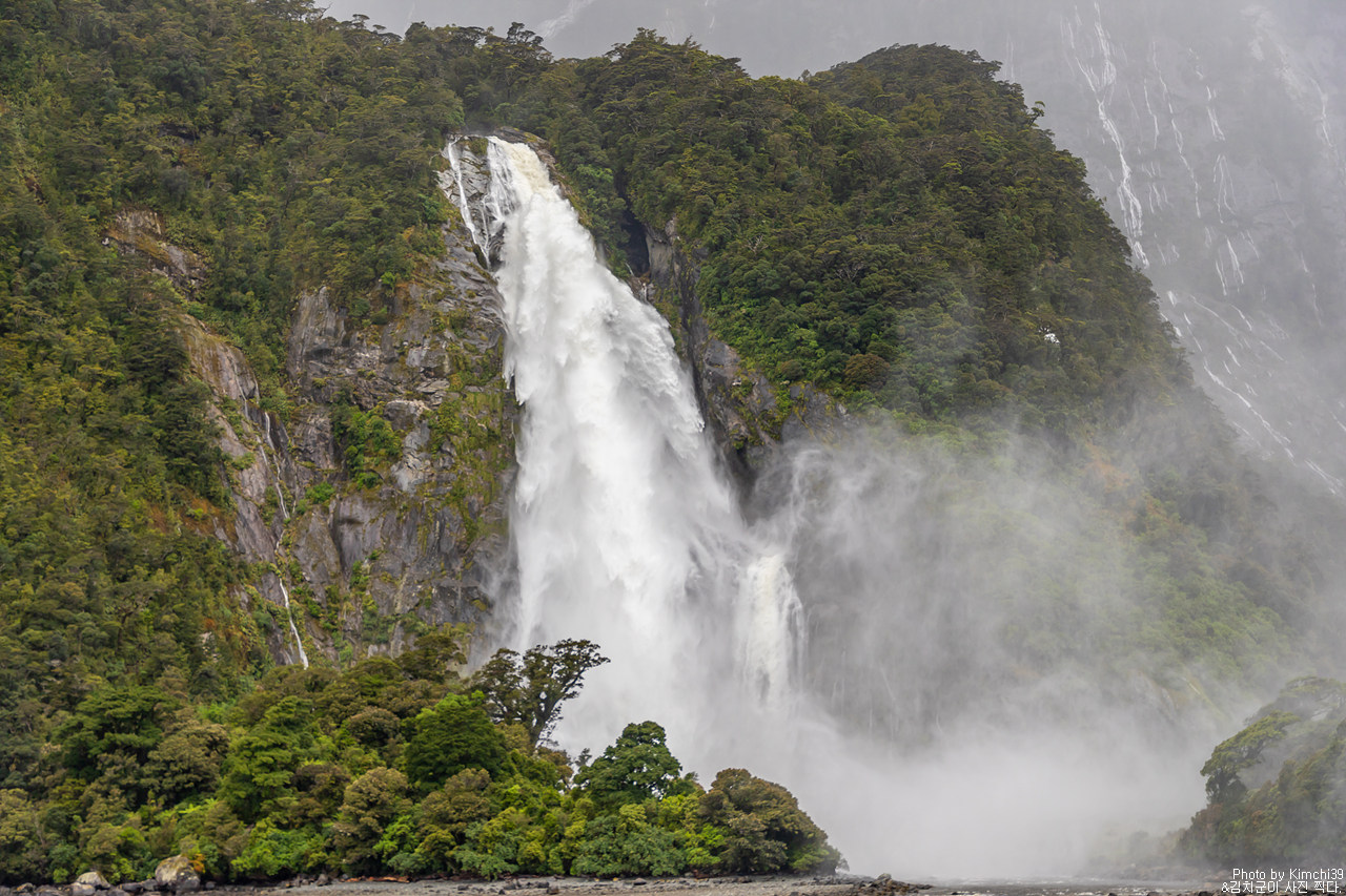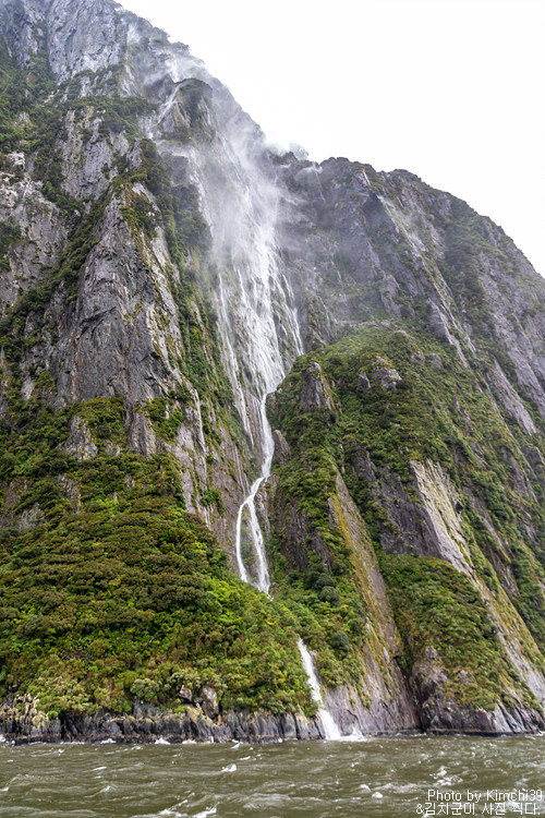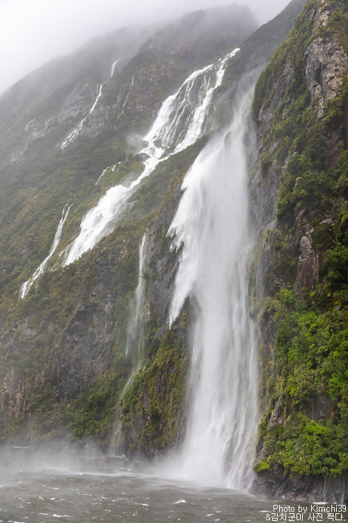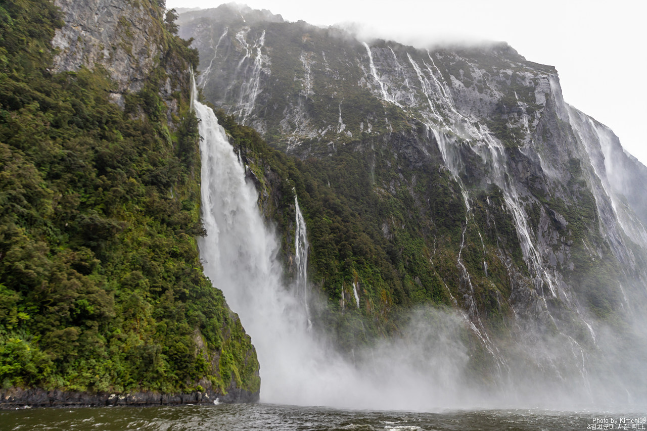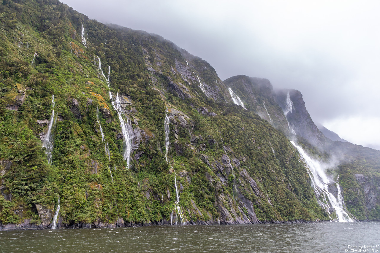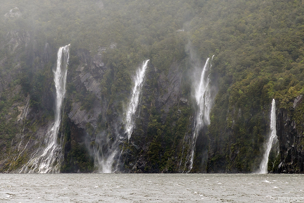 그렇게 밀포드사운드 쥬시 크루즈는 출발했고, 곧바로 비가 엄청나게 쏟아지기 시작했다. 아. 역시 비가 온다고는 했지만, 이렇게까지 많이 올 줄이야. 덕분에 모든 사람들이 배 안에서 머물렀지만, 역시 밖에서 비를 맞으며 감상하는 용자도 있었다.
