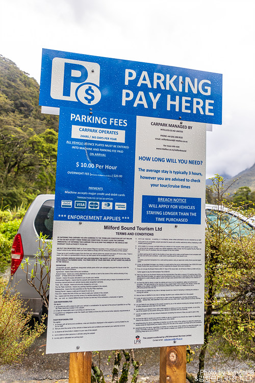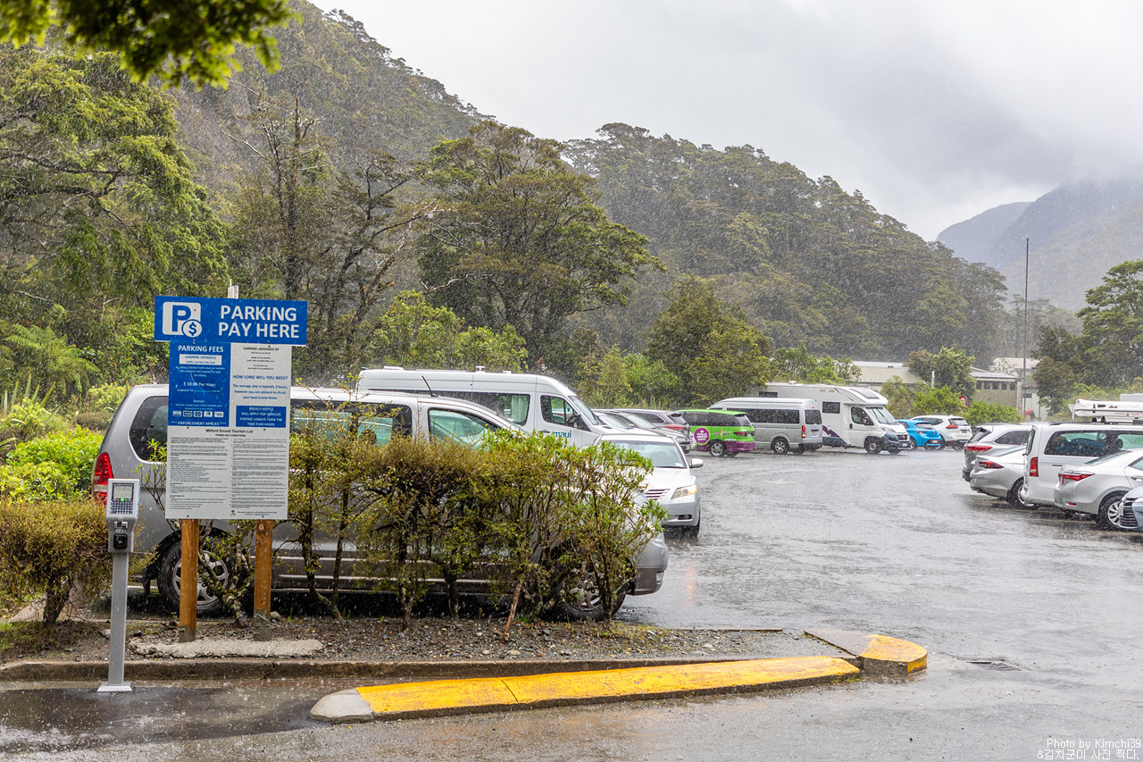 캐즘에서 트레일을 마치고, 커피한잔을 하면서 여유를 부리다보니 어느덧 시간이 훅 지나가버렸다. 시간 계산을 못하고 캠핑카에서 커피한잔을 한 실수가 있었던 만큼, 원래 계획했던 무료주차장에 주차를 하지 않고 그냥 바로 밀포드사운드 주차장으로 가기로 했다. 밀포드사운드 주차는 시간당 $10을 받는데다가, 투어가 대부분 2시간 소요되기 때문에 최소 주차비용을 $30을 받는다. 뉴질랜드에서 가장 비싸게 낸 주차비이기도 했다.