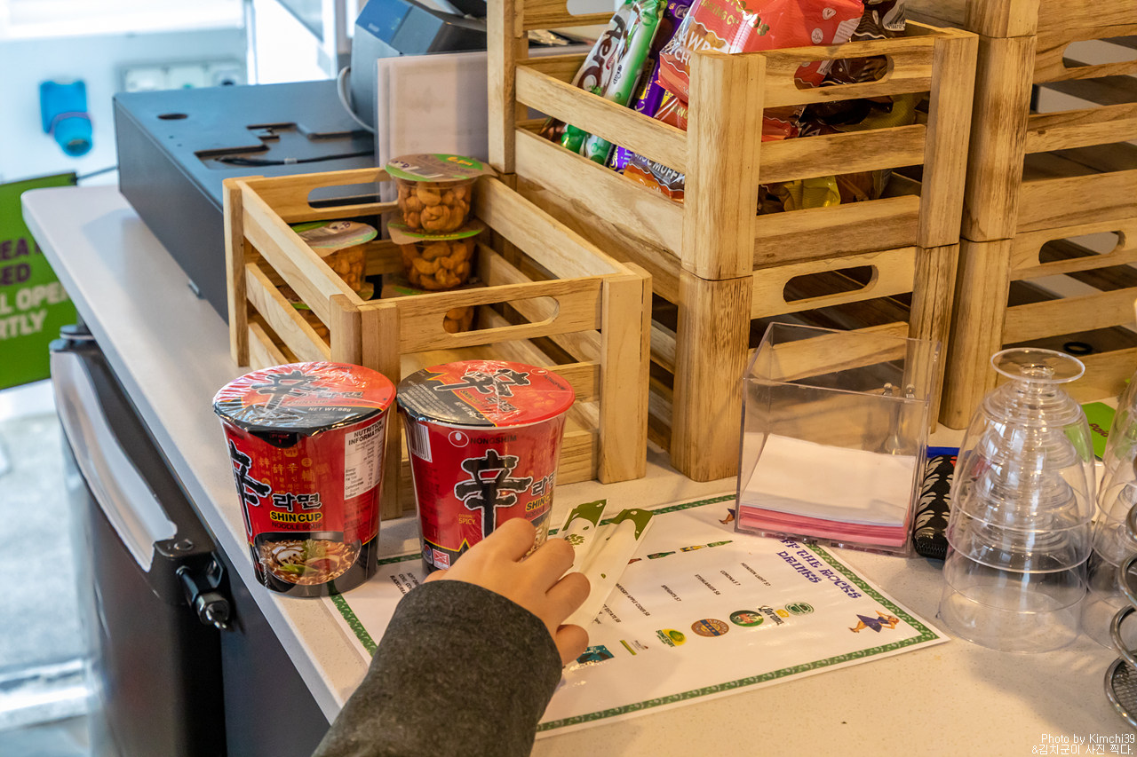 너무 추운 날이기도 했고, 기다리는동안 갑자기 허기가 지기 시작해서 바로 배 뒤편의 매점으로 달려갔다. 컵라면 하나에 무려 4 NZD(약 3천 200원)이나 했지만, 맛있었다. 하나 먹고 나니, 즉석밥도 있었으면 하는 생각까지 들었다. 그렇게 우리가 라면 냄새를 풍겨서였을까? 무료로 제공하는 차를 마시러 다시 매점쪽으로 갔더니, 라면을 먹으려는 사람들이 줄을 길게 서 있었다.