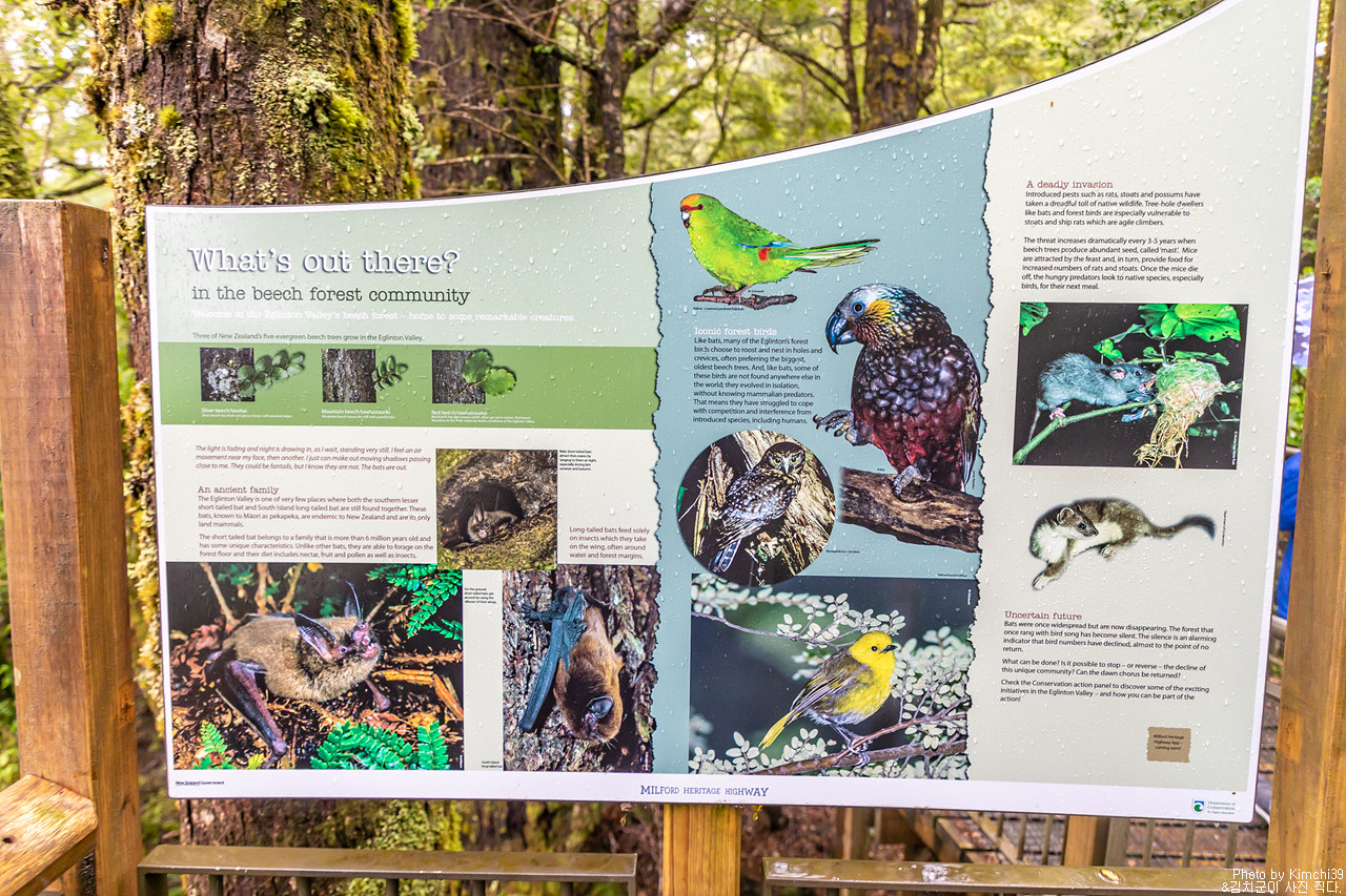 호수가 아쉬워서, 안내판이라도 열심히 읽어본다. 그러고보면, 생각보다 뉴질랜드에서 야생동물들은 거의 보지 못했다. 뭐, 위험한 동물이 없는 뉴질랜드기도 하지만, 이렇게 안보일 줄이야.