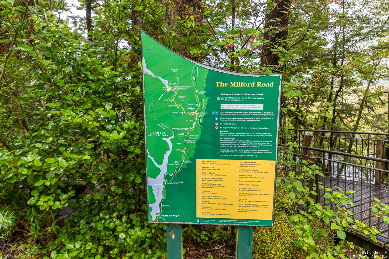 테아나우를 지나 계속해서 밀포드 사운드로 향했다. 오늘 크루즈 투어는 조금 늦은 시간으로 예약하기는 했지만, 그래도 여러 트레일도 걸어보고 가능하면 날씨가 좋을 때 밀포드사운드까지 도착하고 싶었기 때문이었다. 오늘의 일기예보는 오전에는 구름과 해, 점심즈음에는 구름, 오후늦게부터는 비였기 때문에 점심쯤에만 도착해도 비오지 않는 풍경을 볼 수 있을거라는 기대 때문이었다.