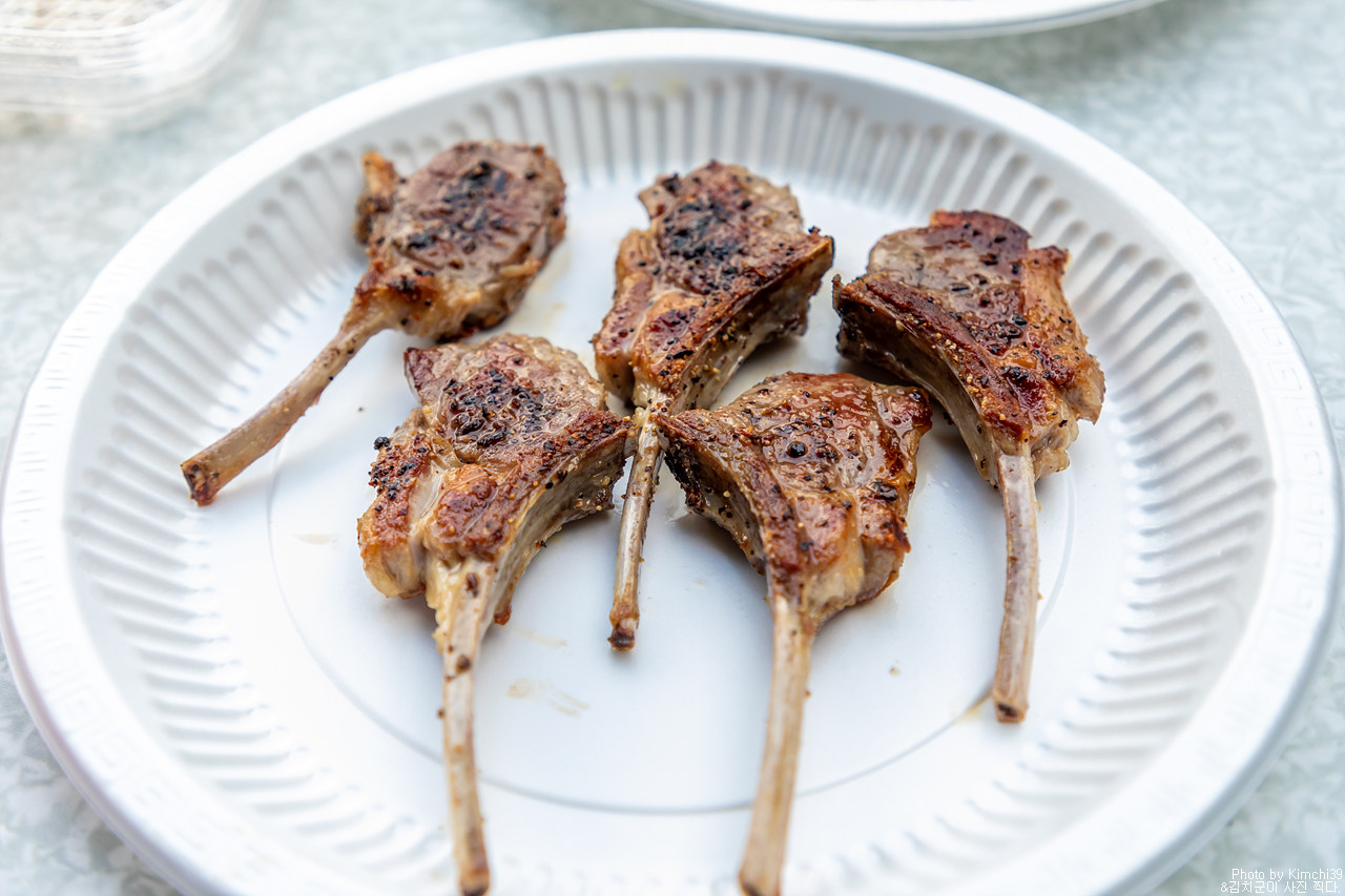 다른 건 하나도 필요가 없었다. 야채는 양파를 굽는 것 만으로 충분했고, 바로 옆에서 구울 수 있는 만큼 3판을 차례차례 구우면서 따뜻하게 먹을 수 있었다. 양갈비는 정말 부드럽고, 입에서 살살 녹았다. 같이 간 일행이 인생 양고기라고 표현했을 정도로 맛있었다.