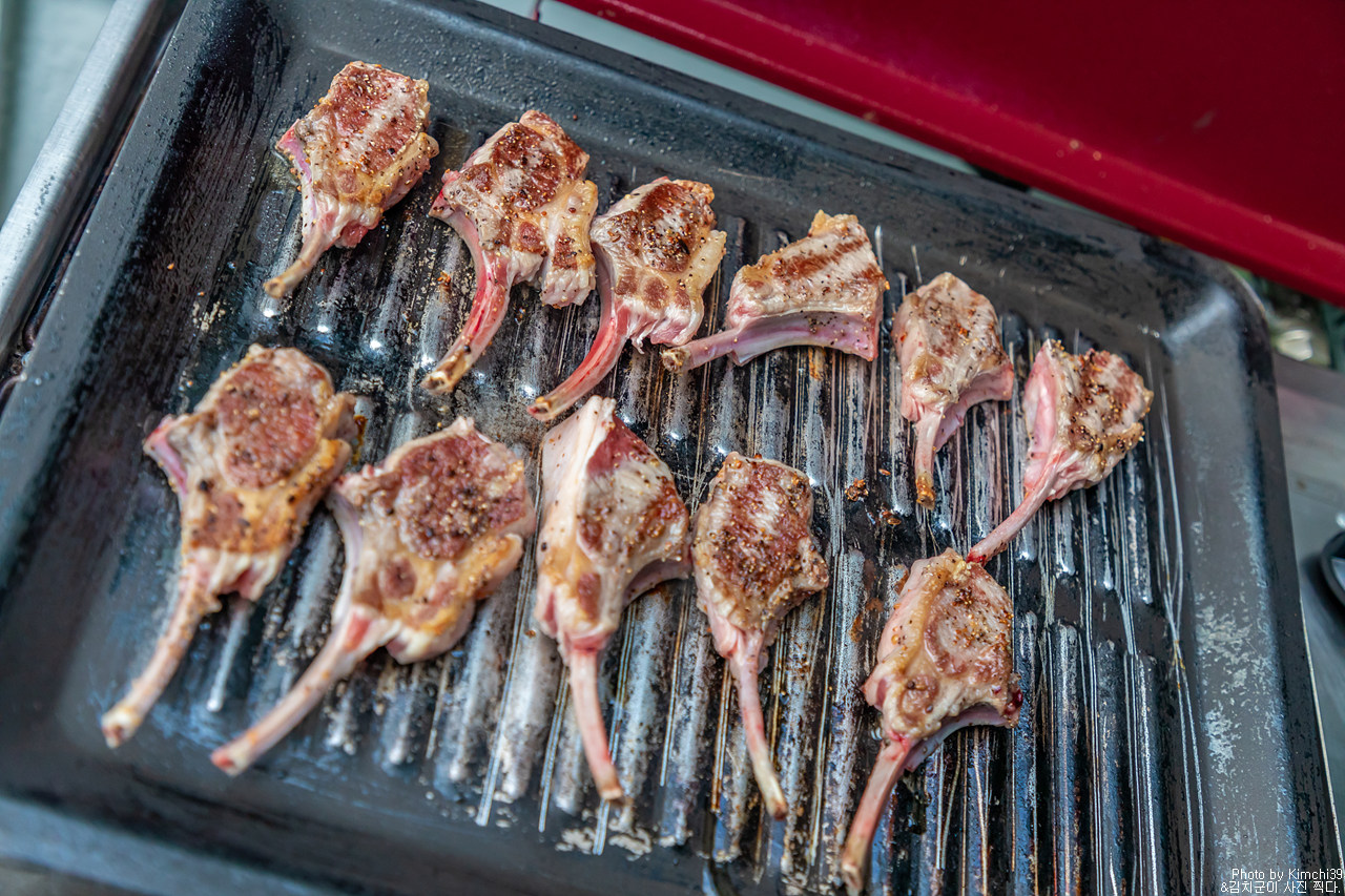 준비한 양갈비를 적절하계 예열된 그릴 위에 올려주면, 향긋한 양고기 냄새가 풍겨올라오기 시작한다. 양고기의 향에 거부감이 있는 사람이라도, 이렇게 시즈닝을 뿌린 신선한 양갈비는 아주 손쉽게 먹을 수 있을 정도로 맛있다. 괜히 사람들이 양갈비 양갈비 하는게 아니니까.