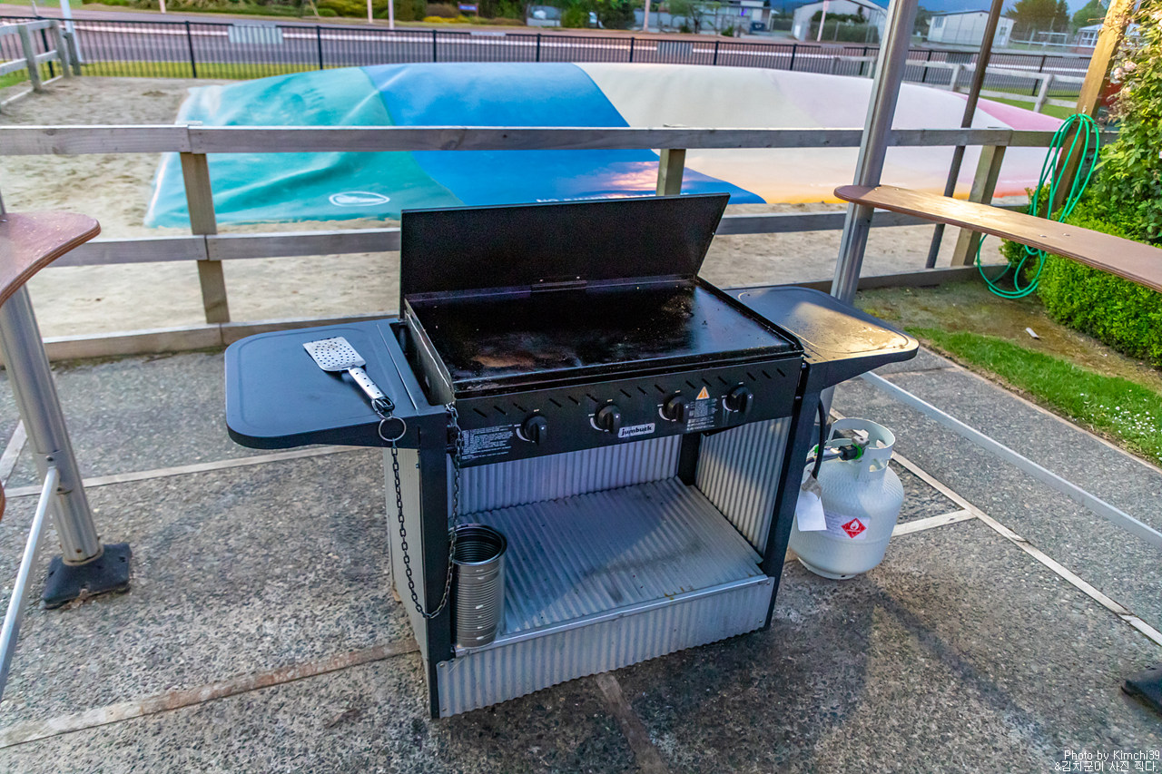 캠핑카 옆의 BBQ 그릴을 꺼내면 완성. 그리고, 인클루시브팩에 포함된 테이블과 캠핑의자를 꺼내서 세팅하면 바로 옆에서 굽고 동시에 먹을 수 있는 환경이 갖춰진다. 그렇다보니 고기를 구울때는 주방으로 가지 않고 차 옆에서 구워먹는 날이 많았다. 이렇게 홀리데이파크로 올 때에는 사실 주방이 있어서 요리 부담이 없지만, 화장실 정도밖에 없는 무료캠핑장으로 갈 경우에는 이런 조리방법이 도움이 많이 된다.