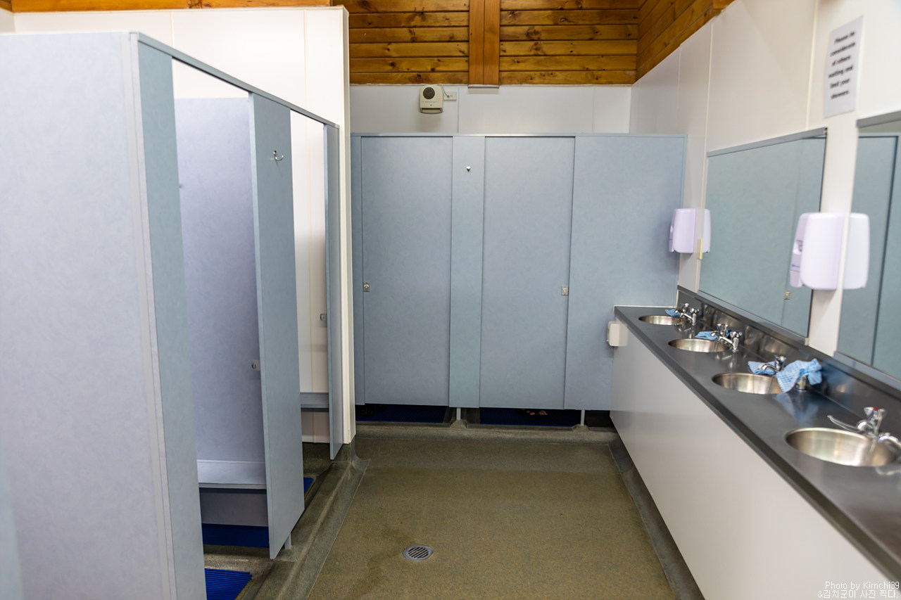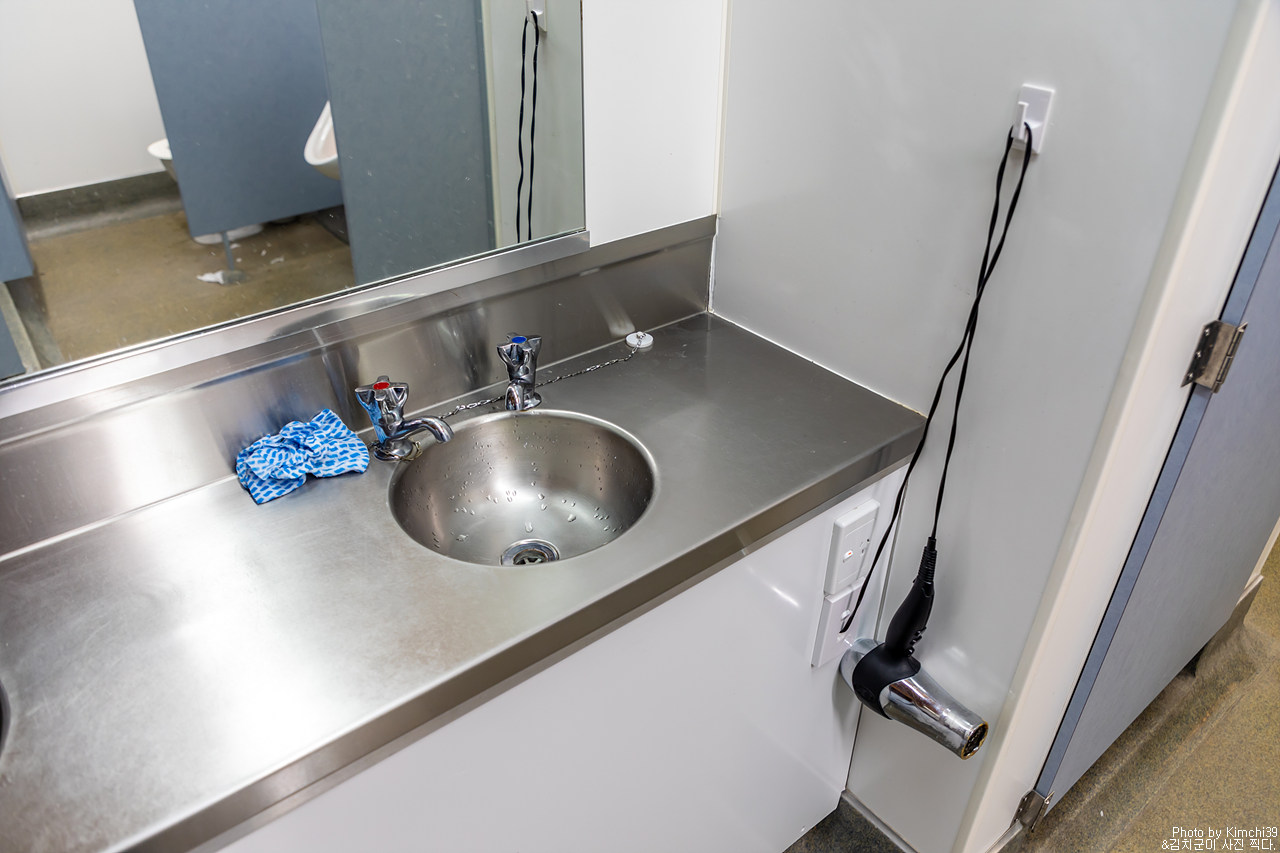 화장실과 샤워시설. 나름 뜨거운 물도 잘 나왔고, 무료로 쓸 수 있는 헤어 드라이기도 있었다.