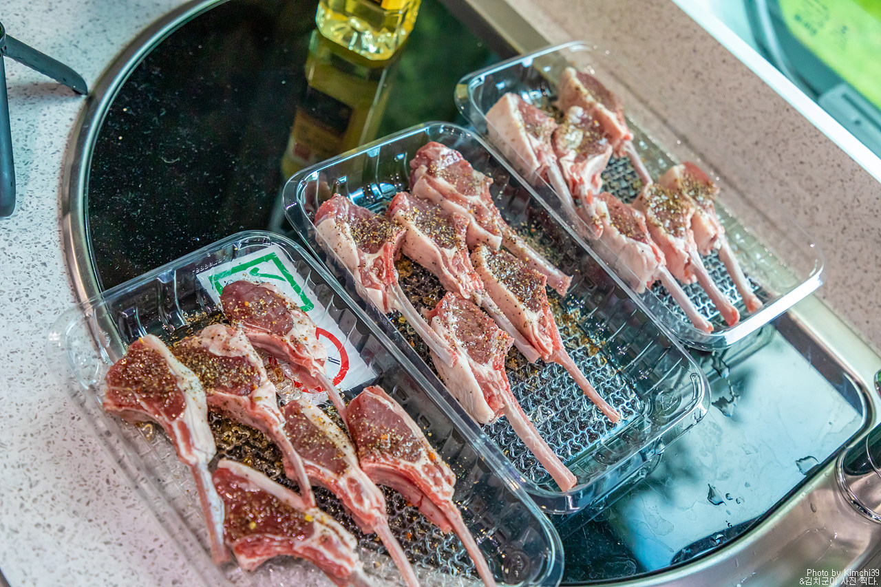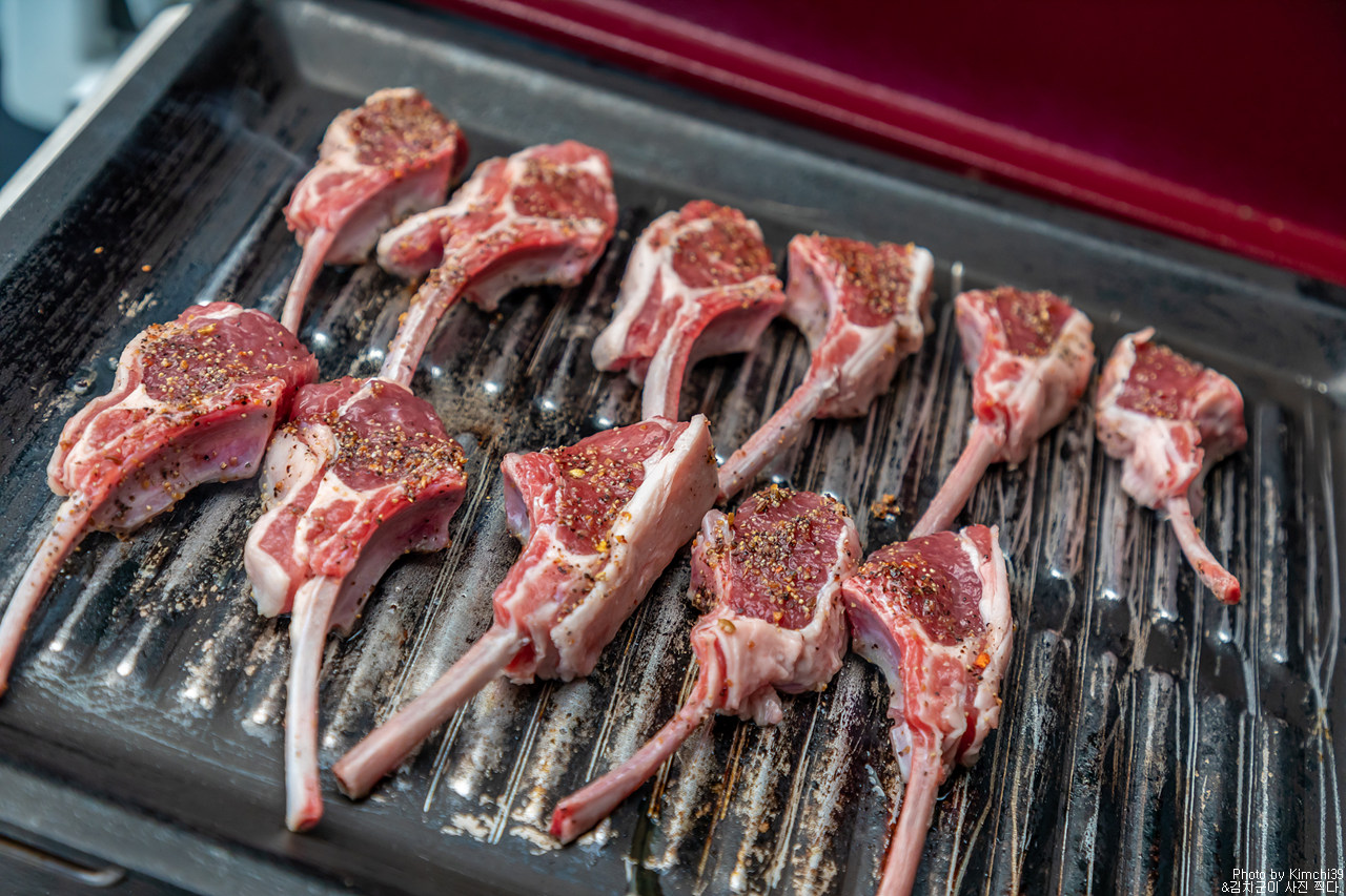 준비한 양갈비를 적절하계 예열된 그릴 위에 올려주면, 향긋한 양고기 냄새가 풍겨올라오기 시작한다. 양고기의 향에 거부감이 있는 사람이라도, 이렇게 시즈닝을 뿌린 신선한 양갈비는 아주 손쉽게 먹을 수 있을 정도로 맛있다. 괜히 사람들이 양갈비 양갈비 하는게 아니니까.