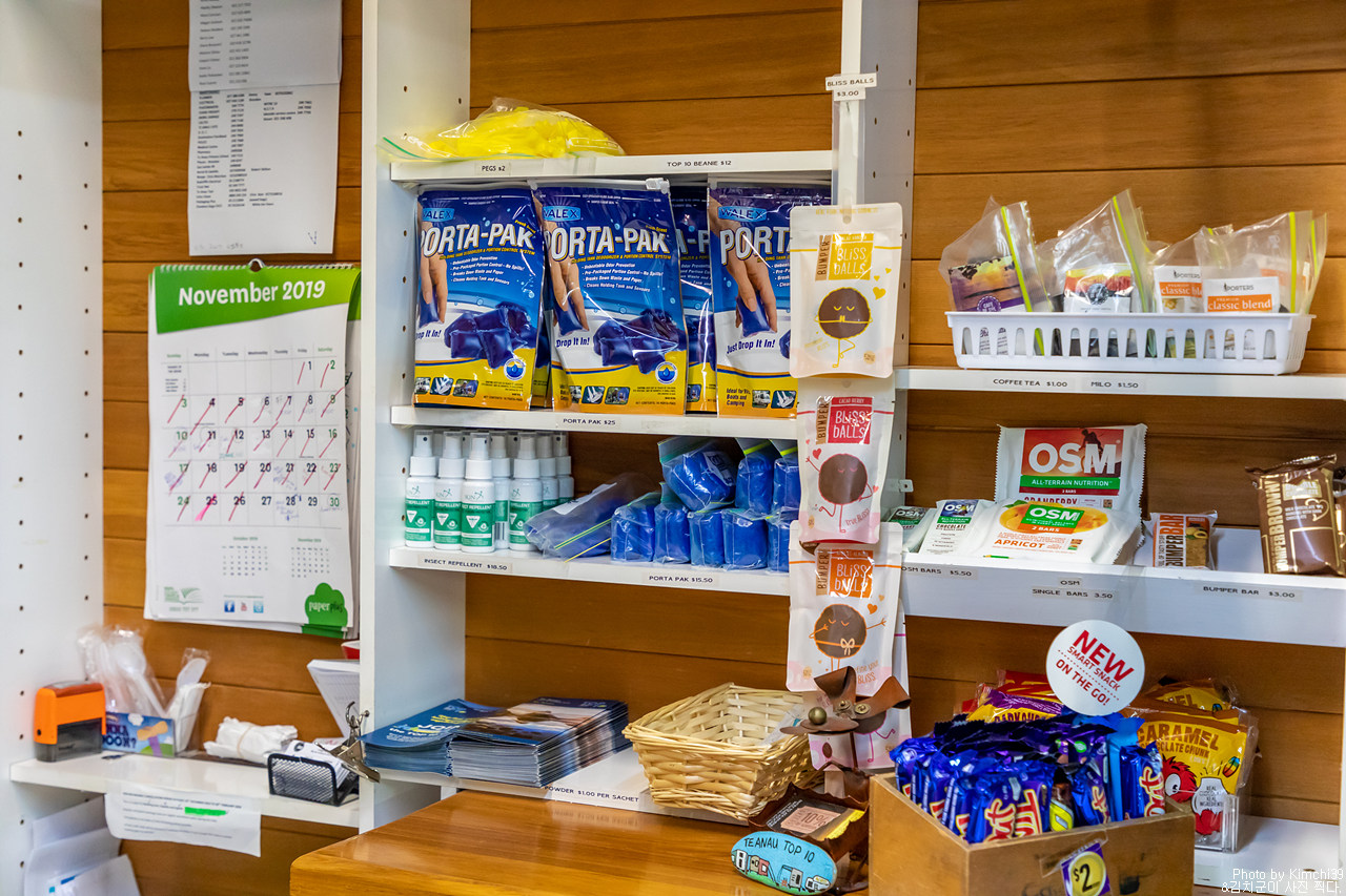 TOP10 홀리데이파크의 체크인 카운터. 미리 예약을 했던지라, 바로 이름만 확인하고 체크인을 할 수 있었다. 한쪽에서는 여러가지 캠핑관련 물품들도 작게 팔고 있었다.