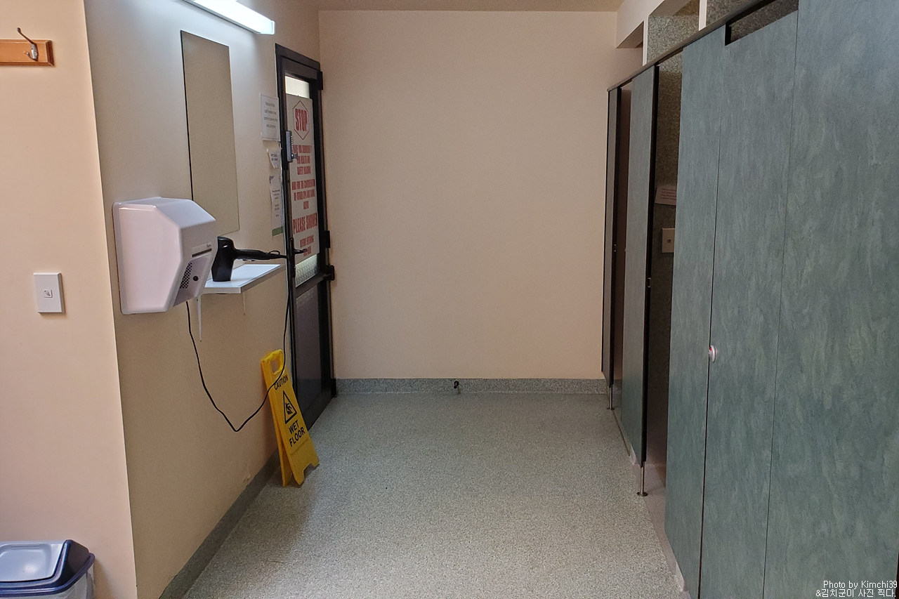 샤워시설. 낮시간대에 잠시 청소시간이 있다. 샤워시설도 깔끔하고 좋았다. 사우나도 있는 것 같았지만, 저녁이 늦어서 닫혀있었다. 뭐 유료여서 쓰진 않았을 것 같지만.