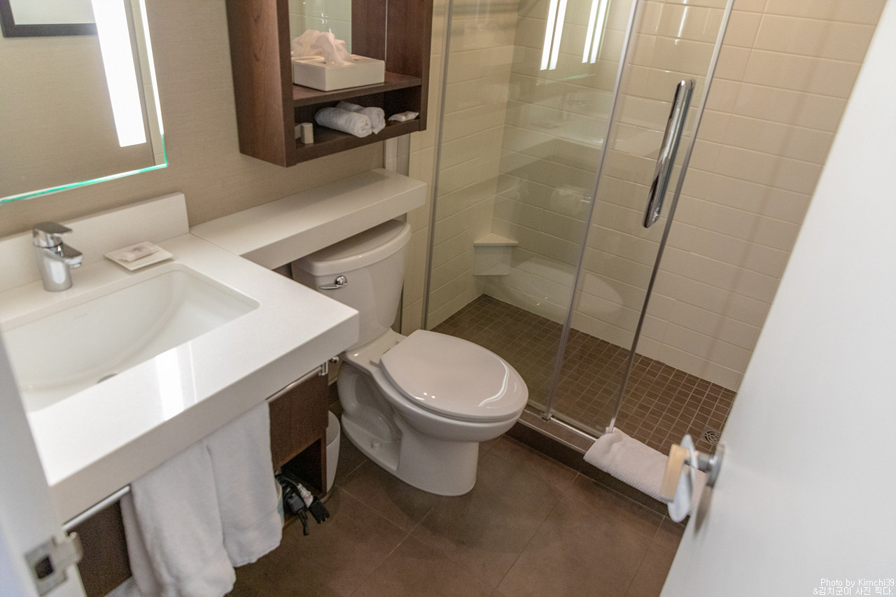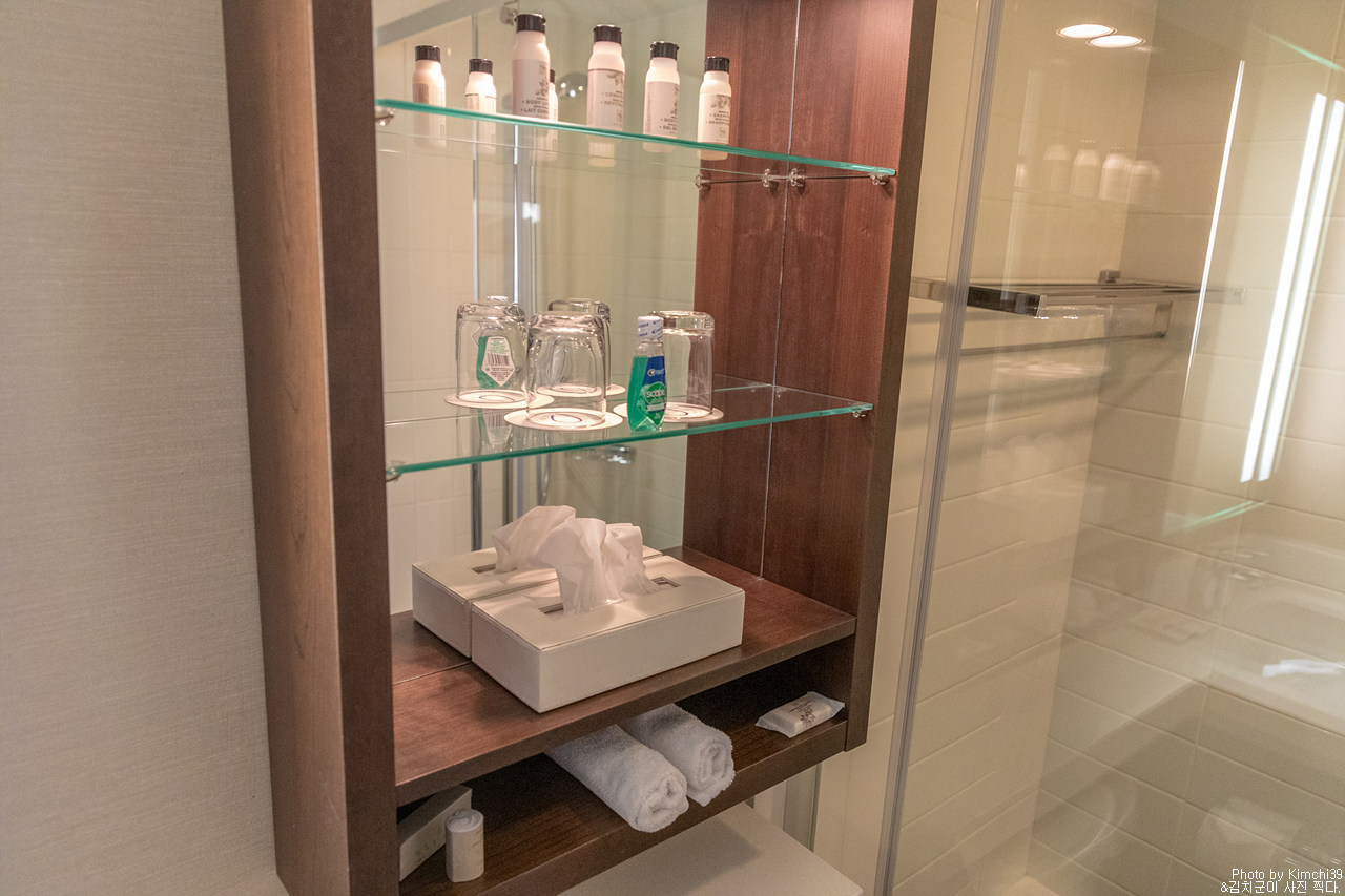 욕실. 내가 묵었던 객실은 배스텁이 없는 샤워부스 형태였다.