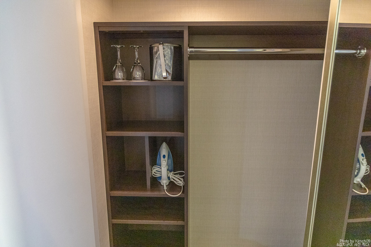 그리고 클로짓. 옷걸이는 안쪽에 있었고, 그 외에 아이스버킷, 와인잔, 다리미가 있었다.