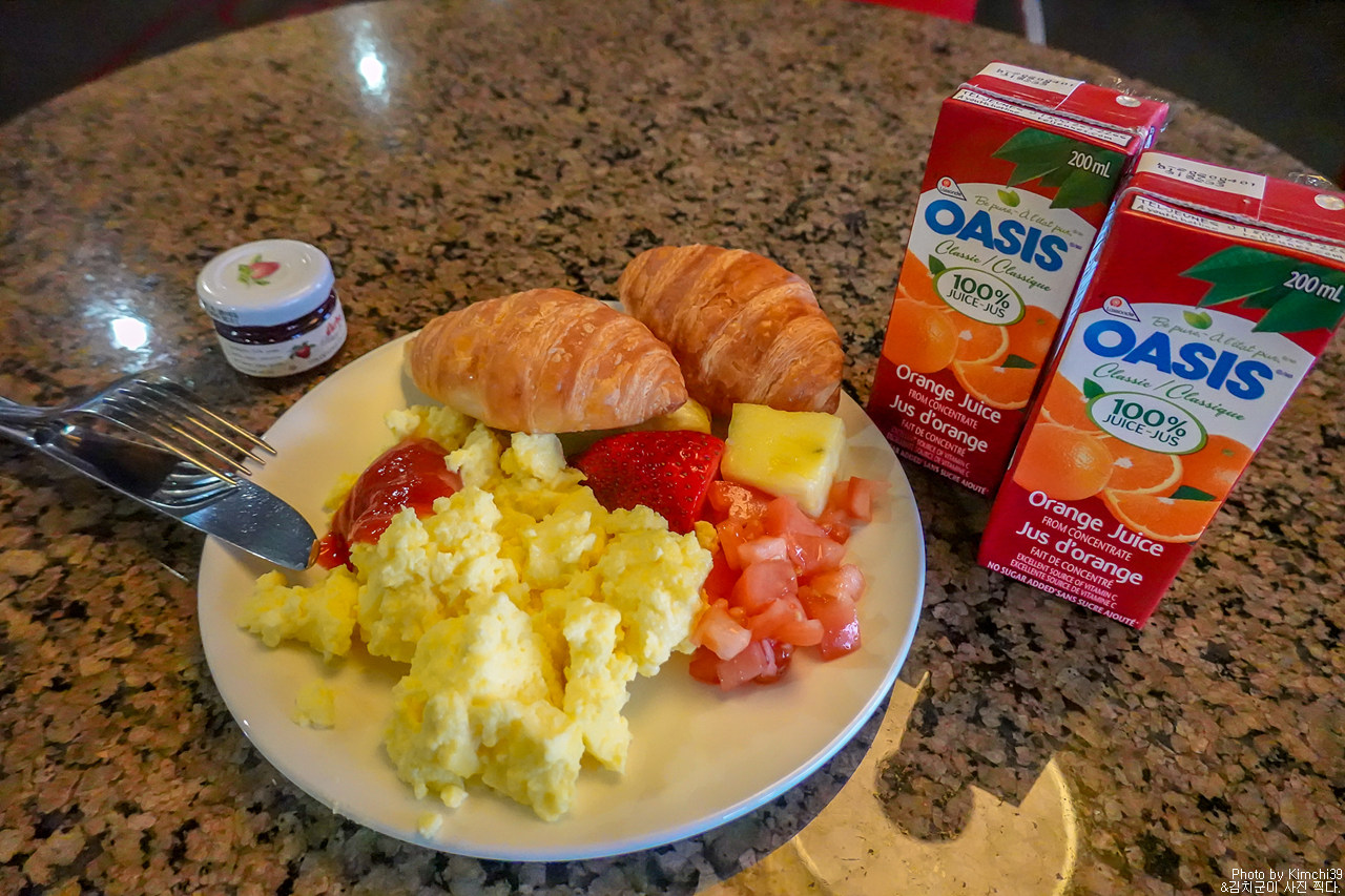 라운지에서 먹었던 아침 조식. 주스 기계가 있었지만, 주스 팩이 더 맛있어서 주스는 팩으로 ^^;;