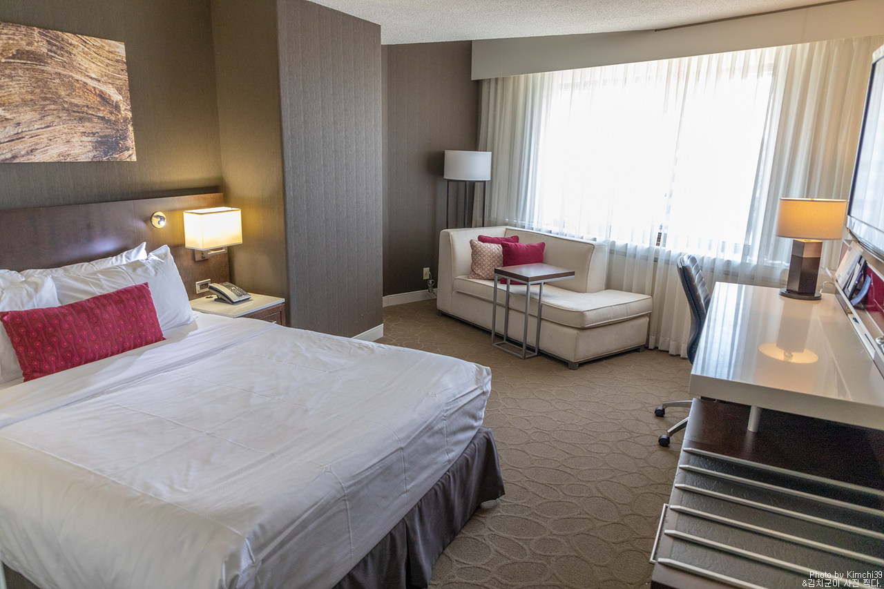 퀘벡시티에서 이번에 묵었던 숙소는 국회의사당 뒤쪽 컨벤션 센터 옆에 위치한 델타 호텔 바이 메리어트였다. 컨벤션에 방문하는 사람들이 주로 묵는 호텔로, 그 옆의 힐튼 호텔 그리고 메리어트 다운타운과 함께 객실 수가 상당히 많은 호텔에 속한다. 그렇다 보니 상대적으로 올드타운의 숙소들에 비해 가격이 저렴한 편에 속하는데, 올드타운 대부분이 도보로 10분 이내에 갈 수 있다는 것을 감안하면 상당히 괜찮은 위치라고 할 수 있다.