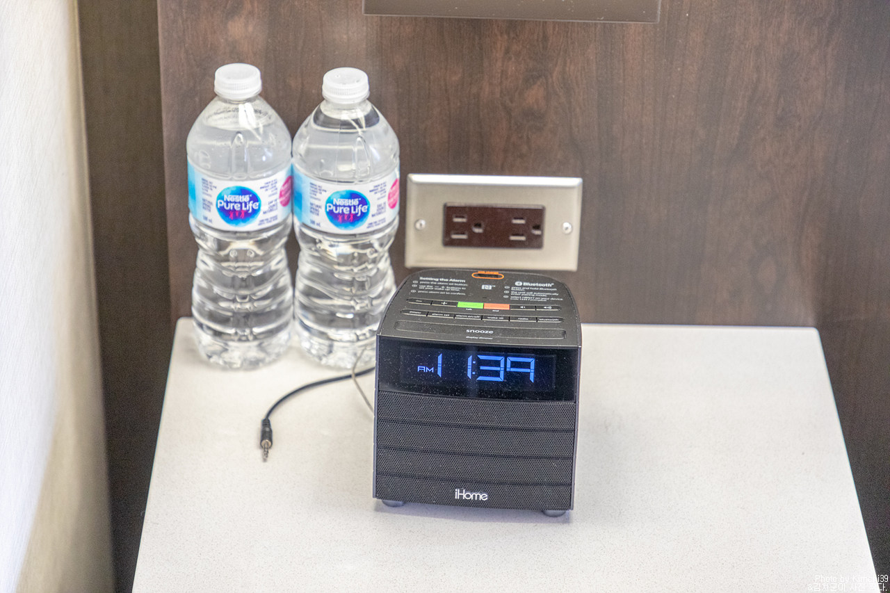 왼쪽에도 플러그가 있고, 생수와 시계가 있었다.
