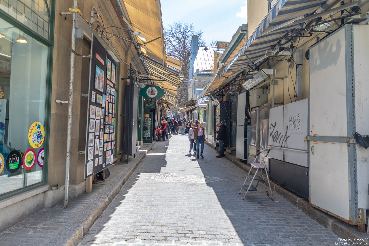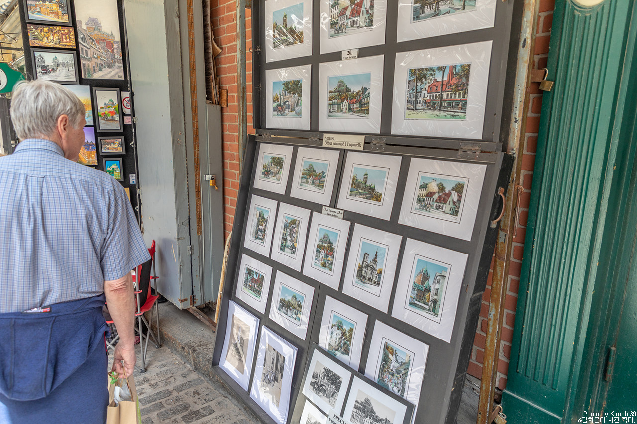 샤토 프롱트낙 호텔에서 크리스마스 상점이 있는 Rue de Buade쪽으로 가면서 보이는 풍경. 그러고 보면 퀘벡시티에는 꽤 동상이 많다. 내려와서 Rue de Buade 쪽으로 꺾어서 조금 걷다 보면 왼쪽으로 Rue du Tresor가 나오는데 여러 그림들을 판매하는 사람들이 많은 곳이다. 작품 하나하나를 사진 찍는 건 안되지만, 그냥 거리 정도를 찍는 건 다들 신경 쓰지 않는 듯했다.