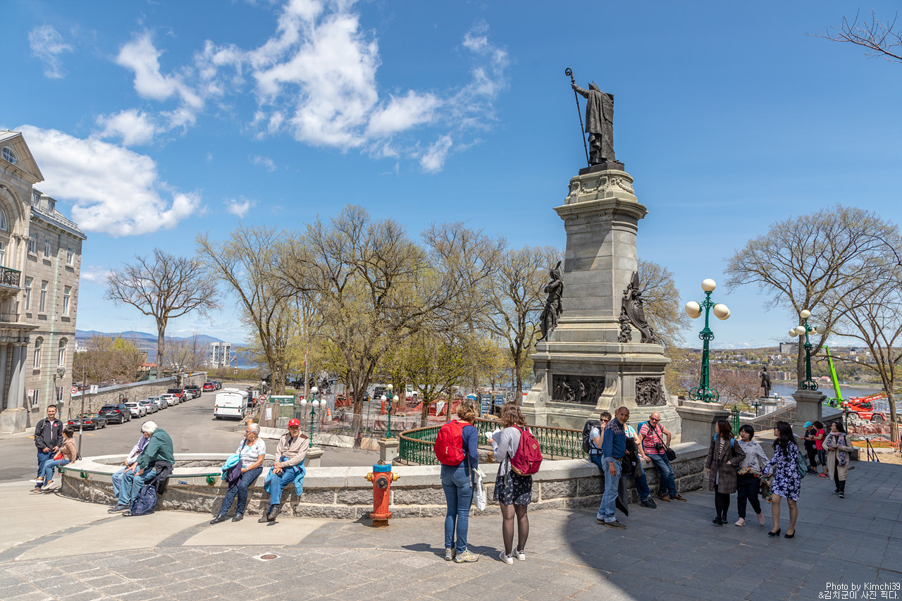 그렇게 길을 따라 올라가면 이렇게 도깨비 언덕에 도착하게 된다. 퀘벡시티에서 가장 멋진 뷰를 가진 포인트가 아닐까 싶다. 샤토 프롱트낙 호텔과 뒤프랭 테라스, 그리고 올드타운까지 한눈에 들어오기 때문이다. 그렇다 보니 낮에도 사람들로 북적이고, 해가 지는 시간대에도 일몰 시간대 풍경을 보기 위해서 사람들이 항상 많은 곳이다.
