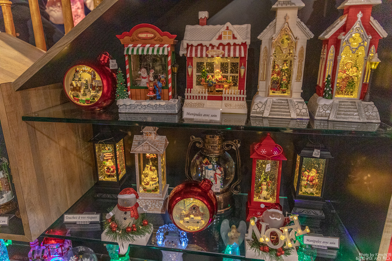 크리스마스 상점의 다양한 크리스마스 상품들. 1년 내내 운영하는 샵이기 때문에, 크리스마스 관련 선물을 미리 준비하고 싶다면 꽤 갈 만하다. 사실 그것이 아니더라도 그냥 여러 가지 물건들을 구경하는 소소한 재미가 있는 곳이고, 올드타운 중심에 있는 가게이기 때문에 굳이 가지 않을 이유가 없기도 하다. 이 가게 앞은 노트르담 성당인데, 관광객들에게는 성당보다 오히려 이 상점이 더 인기 있는 듯했다.