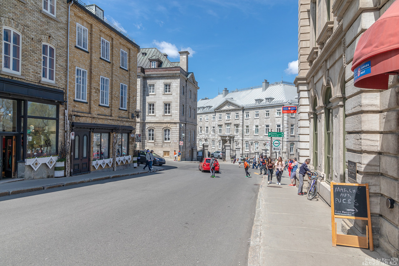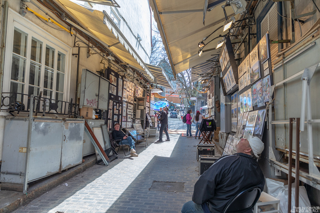 샤토 프롱트낙 호텔에서 크리스마스 상점이 있는 Rue de Buade쪽으로 가면서 보이는 풍경. 그러고 보면 퀘벡시티에는 꽤 동상이 많다. 내려와서 Rue de Buade 쪽으로 꺾어서 조금 걷다 보면 왼쪽으로 Rue du Tresor가 나오는데 여러 그림들을 판매하는 사람들이 많은 곳이다. 작품 하나하나를 사진 찍는 건 안되지만, 그냥 거리 정도를 찍는 건 다들 신경 쓰지 않는 듯했다.
