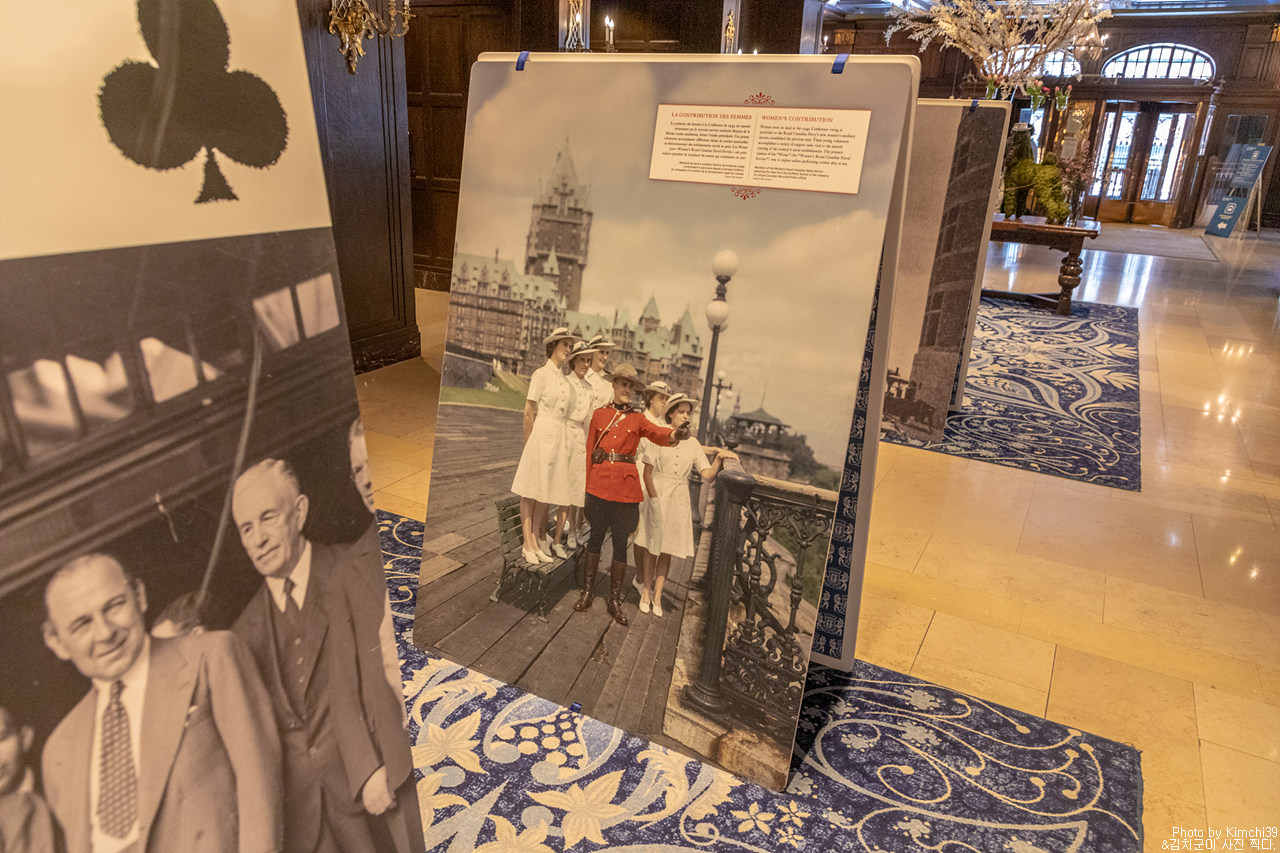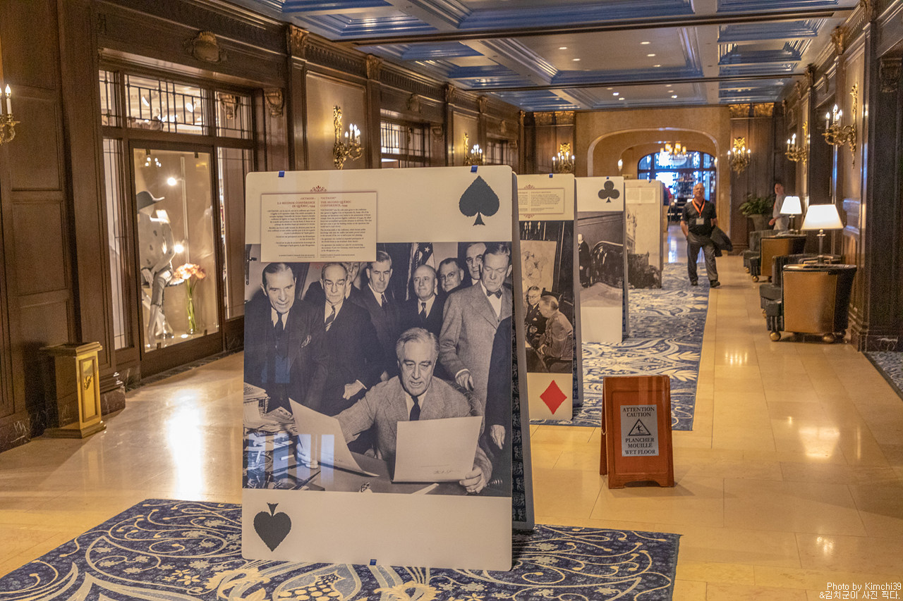 로비에 전시되어 있던 전시물들. 과거의 퀘벡시티를 경험해 볼 수 있는 사진들이었다.