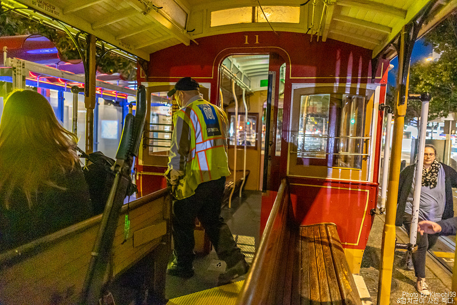 그렇게 조금 더 걸어서 Taylor & Bay 라인에 탔다. 언제나 타이밍이 별로 안좋았는지, 도착했을 때만 해도 하늘이 코발트 색으로 엄청 예뻤었는데... 20분이나 대기하고 출발하니 하늘이 검은색으로 변해버렸다. 너무 아쉽..ㅠㅠ 코발트 빛의 시내풍경을 담을 수 있을거라 기대했는데..