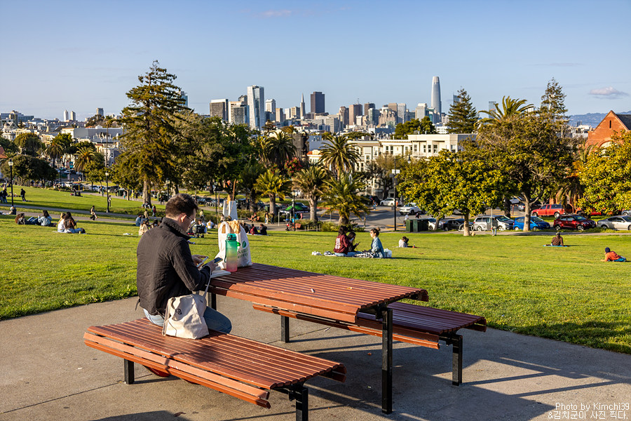 실제로 지인 들 중 미션 돌로레스 공원을 샌프란시스코에서 가장 멋진 뷰를 가진 공원으로 언급하는 사람들이 많다. 샌프란시스코에는 워낙 멋진 뷰를 가진 공원들이 많지만, 여기처럼 여유로움과 뷰가 함께 공존하는 곳은 생각보다 그렇게 많지 않기 때문이다.