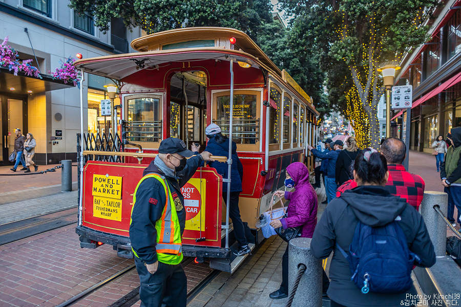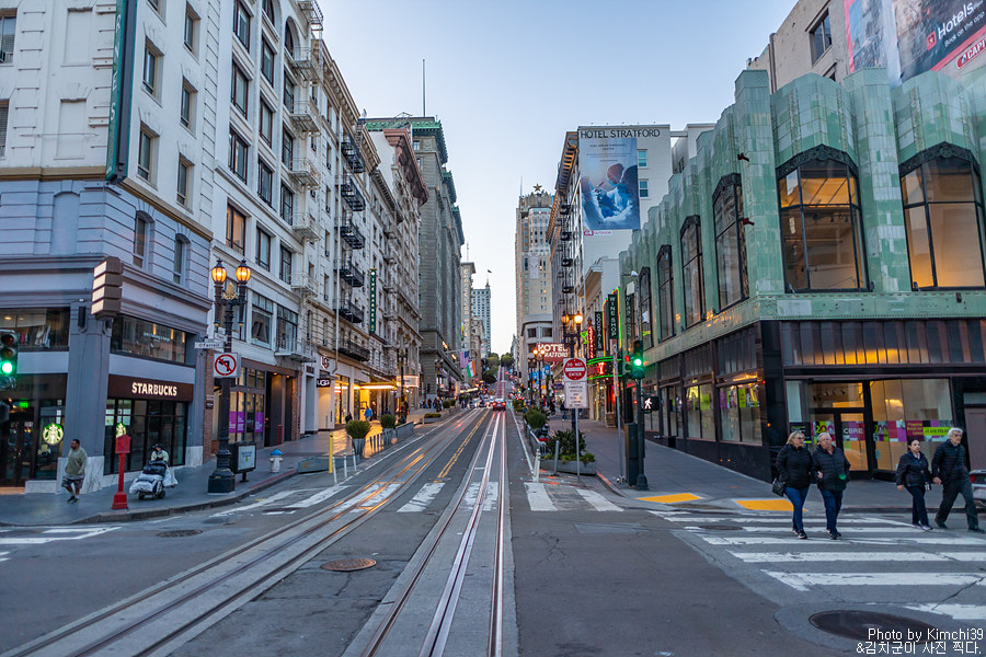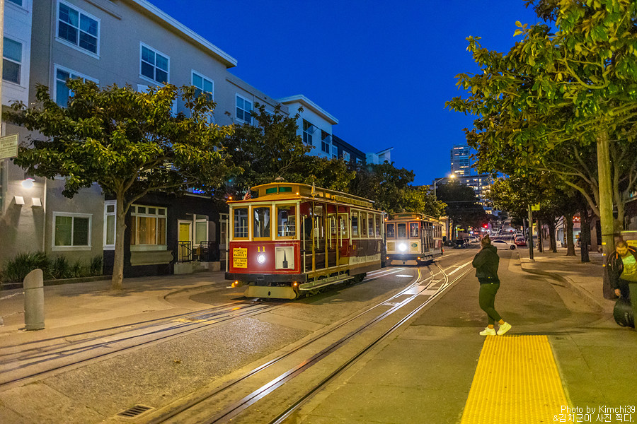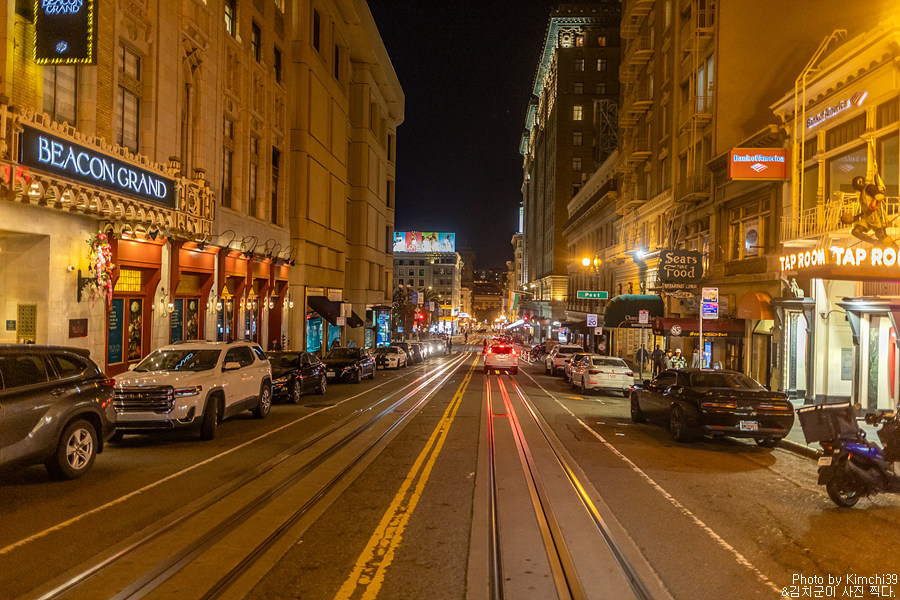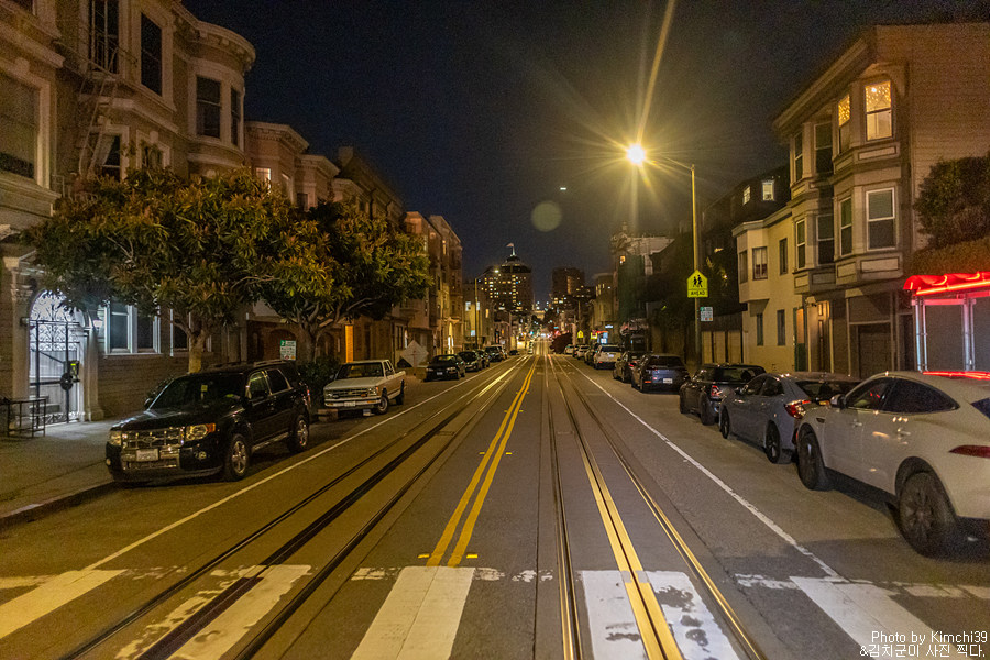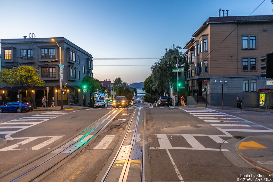 원래 계획은 여기서 다시 Hyde & Beach 라인을 타고 돌아가는 것이었는데, 나름 야경도 볼 겸해서 4블록 정도 떨어진 Taylor & Bay 라인을 타고 돌아가기로 했다. 피셔맨스와프쪽은 저녁에도 관광객이 많은 편이라 그래도 나름 안심하고 걸을 수 있는 몇 안되는 장소다.