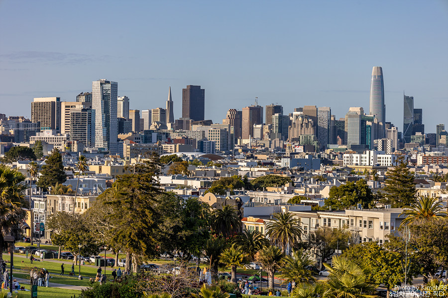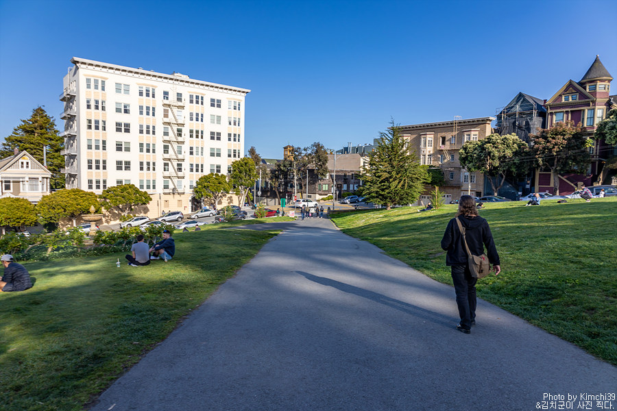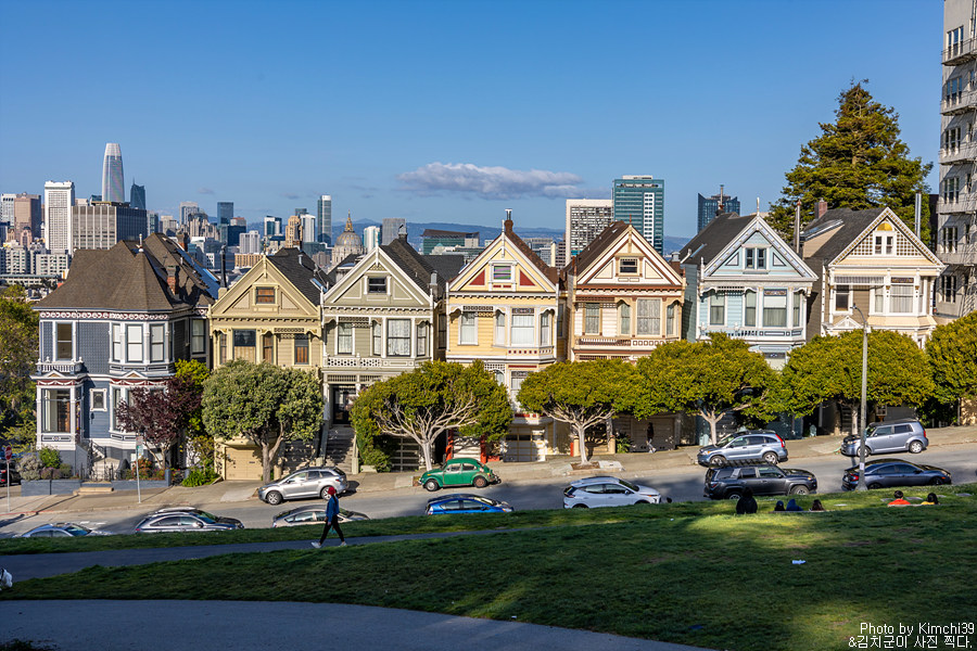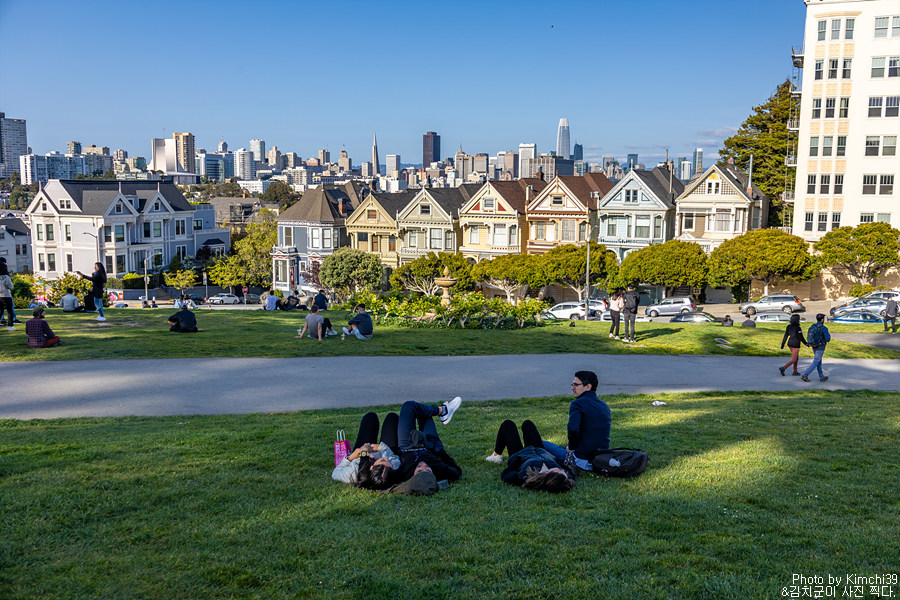 알라모 스퀘어의 언덕에서 내려다보는 페인티드 레이디스. 뒤로 샌프란시스코의 스카이라인이 펼쳐진다. 사실, 이게 전부라고 할 수도 있긴 하지만, 일몰시간대에 와서 일몰과 함께 시간을 보내는 것도 좋다. 예전에 일몰시간에 온적이 있었는데, 해가 지고 건물에 조명이 들어오는 시간도 은근히 아름다웠다.