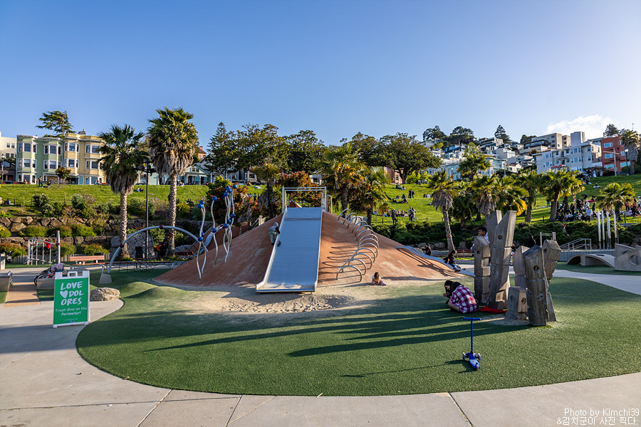 참고로 미션 돌로레스 파크에는 아이들을 위한 놀이시설도 잘 되어있엉서, 가족단위로 나온 사람들도 꽤 많이 볼 수 있다. 여기도 샌프란시스코의 일몰 명소 중 하나다.