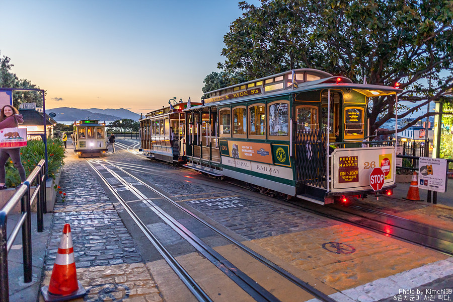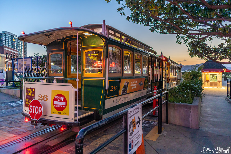 피자를 먹고 나오니 해는 이미 진 상태여서, 바로 케이블카를 타기 위해 이동했다. 이 날 뮤니패스포트 1일권을 끊었으므로, 하루 종일 케이블카로 뽕을 뽑을 생각이었는데, 나름 4번이나 탔으니 돈 값은 충분히 했다 싶다. 아직 해가 완전히 지지 않은 시간이어서 그런지 사람들이 그리 많지 않아서 얼마 기다리지 않고 바로 Hyde & Beach 라인 케이블카를 탈 수 있었다.