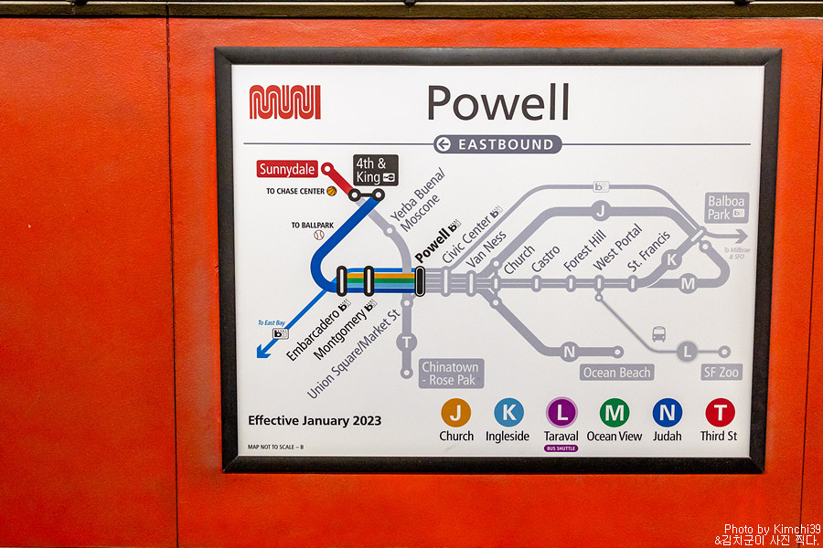 뮤니메트로에서 내렸던 최종 정류장은 파월 역. 샌프란시스코를 여행하는 중이라면, 꼭 역이 아니더라도 굉장히 자주 들리게 되는 곳이다. 공항에 도착해서 바트BART를 타고 유니언스퀘어에 가려면 이 역에서 내리게 되기도 하니까.