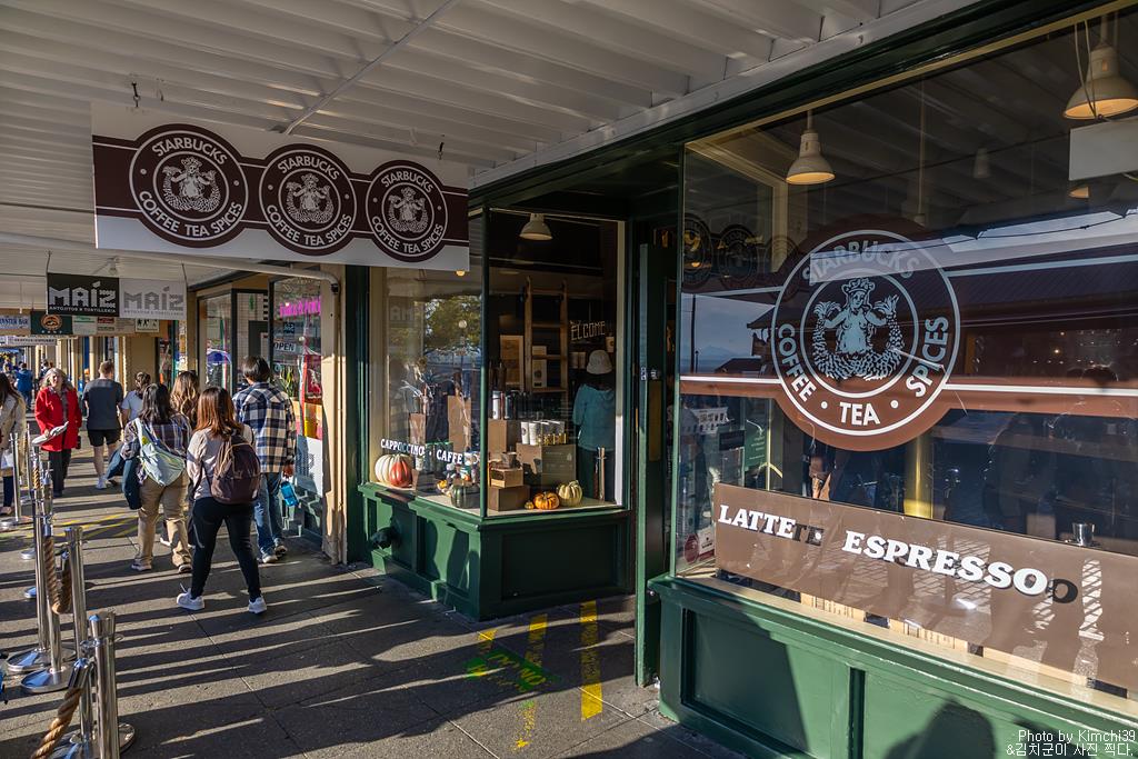 차우더를 먹고 나서 다시 퍼블릭 마켓으로 나왔다. 다음 목적지는 스타벅스 1호점. 이전에도 지나다니다가 한 번 들어가봐야지 했었는데, 줄이 길어서 갈까말까 하다 말았던 적이 여러번이었다. 그렇지만 이번에는 성수기가 아닌 평일 오후였기 때문에 혹시나 하고 가봤는데, 아니나 다를까.. 줄이 생각만큼 길지 않았다.
