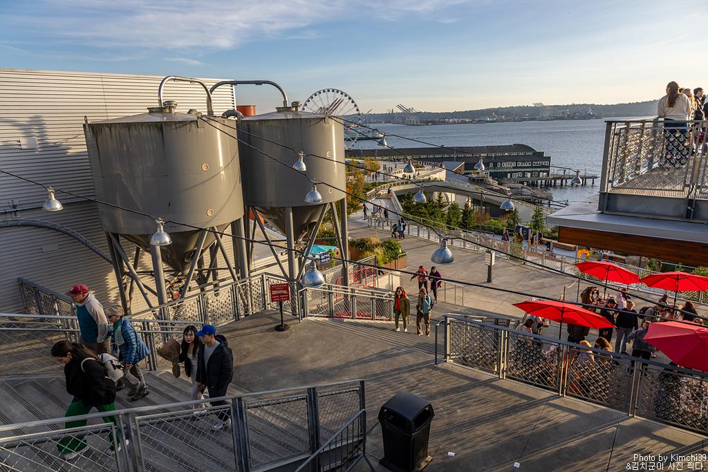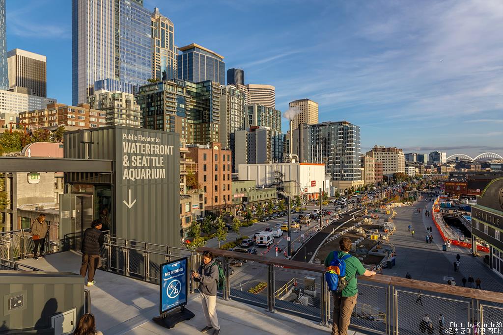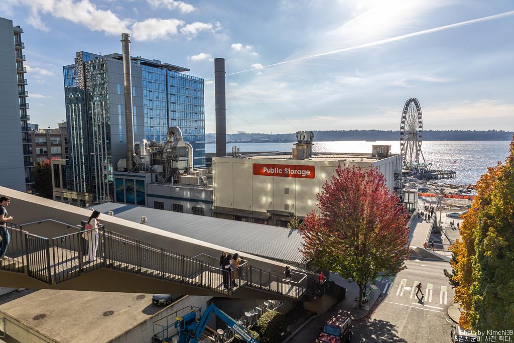 이렇게 내려갈 수 있도록 되어있고, 엘리베이터가 있어 손쉬운 이동도 가능하다. 오버룩 워크(Overlook Walk)에서는 시애틀의 전경을 보기에도 좋은데, 아마도 이곳이 또다른 시애틀의 야경 명소가 되지 않을까 싶었다. 나름 내려다보이는 워터프론트와 빌딩들의 풍경이 괜찮았으니까.